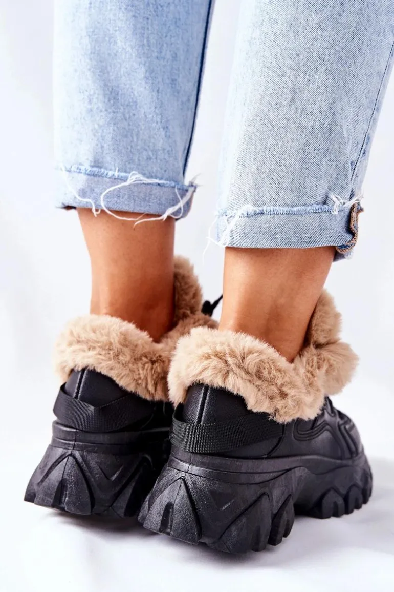 Trapery wykonane są ze skóry ekologicznej. Wewnątrz znajduje się ciepłe i miłe w dotyku futerko. Buty idealnie sprawdzą się w zimowe dni! Przy wyborze rozmiaru prosimy sugerować się tabelą rozmiarów.