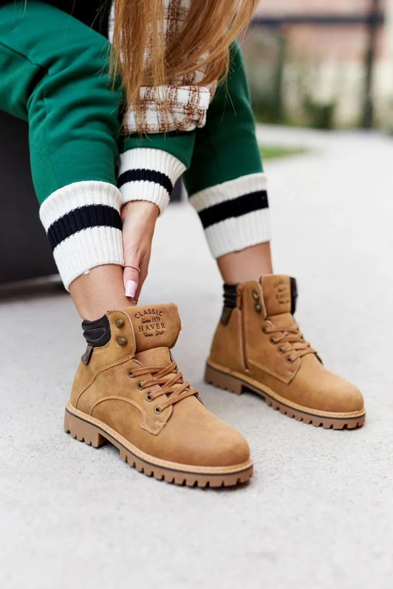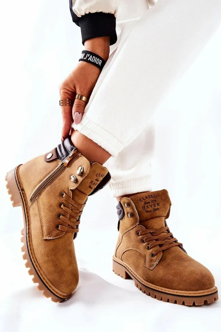 Trapery wykonane zostały z eko skóry. W środku posiadają ocieplenie w postaci miękkiego futerka. Zapinane na suwak oraz wiązane. Idealne na długie spacery w chłodne dni. Buty posiadają przeszycia po bokach i na górze cholewki. Ozdobne tłoczenie na języku. Antypoślizgowa podeszwa. Przy wyborze rozmiaru prosimy sugerować się tabelą rozmiarów.