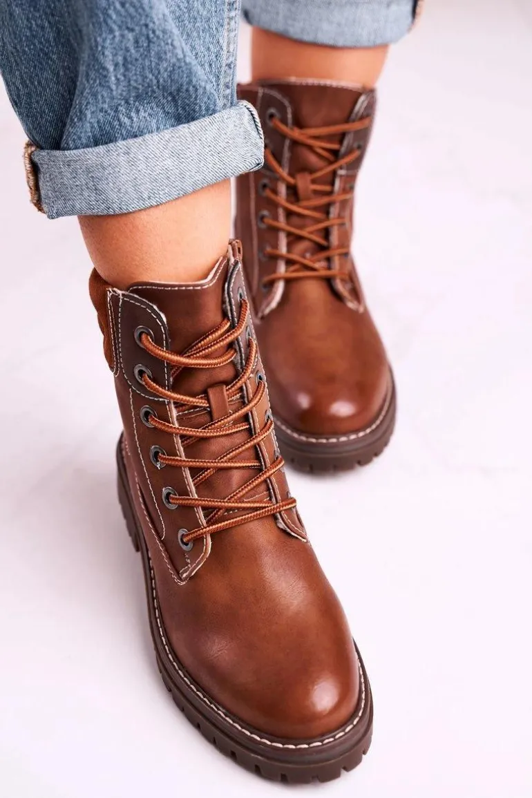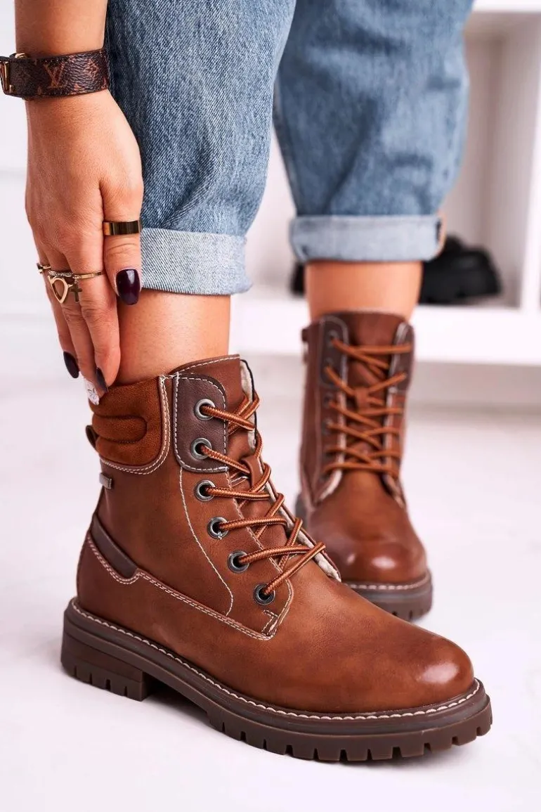 Damskie Ocieplane Workery Trapery Brązowe Timber