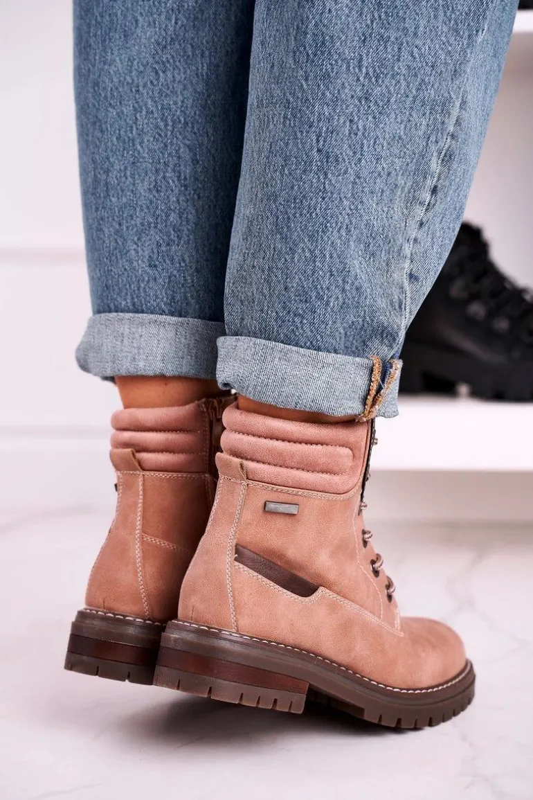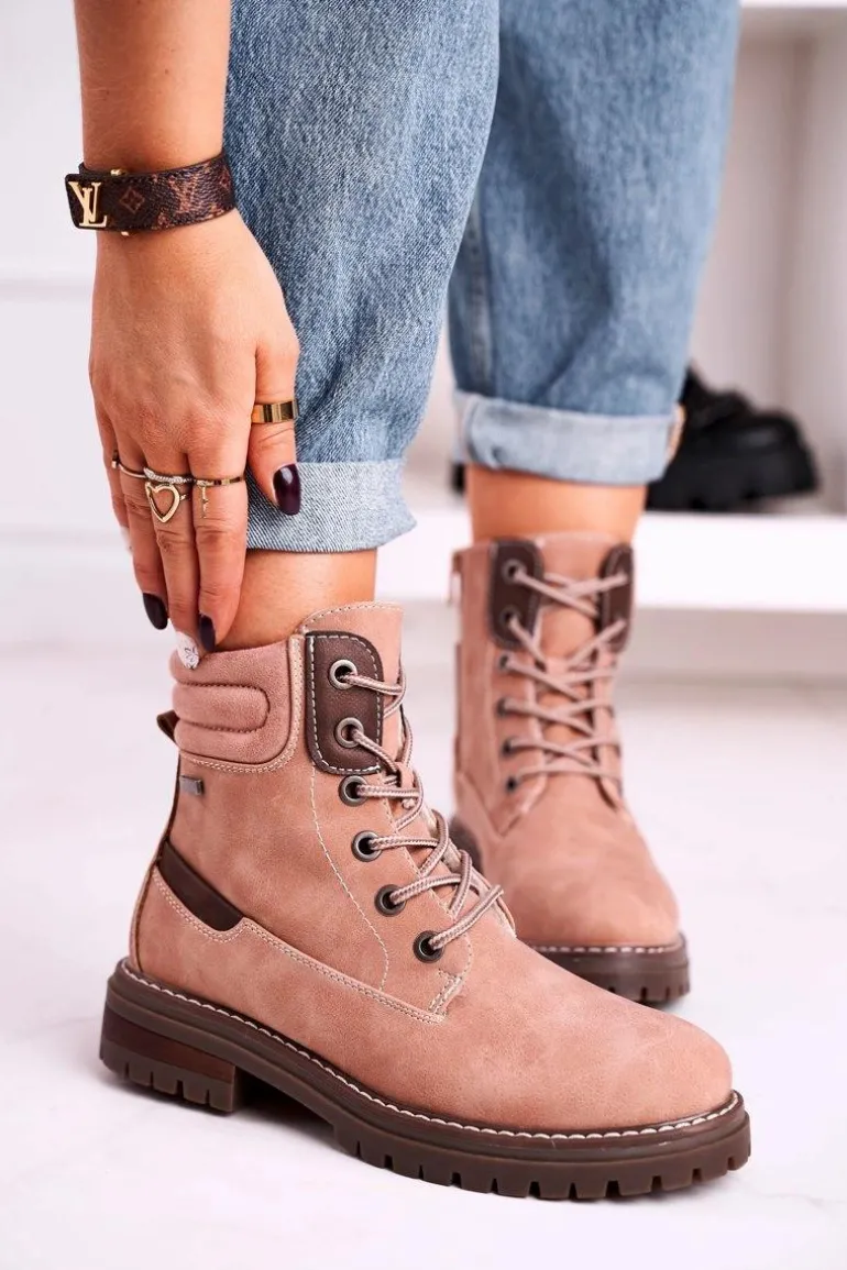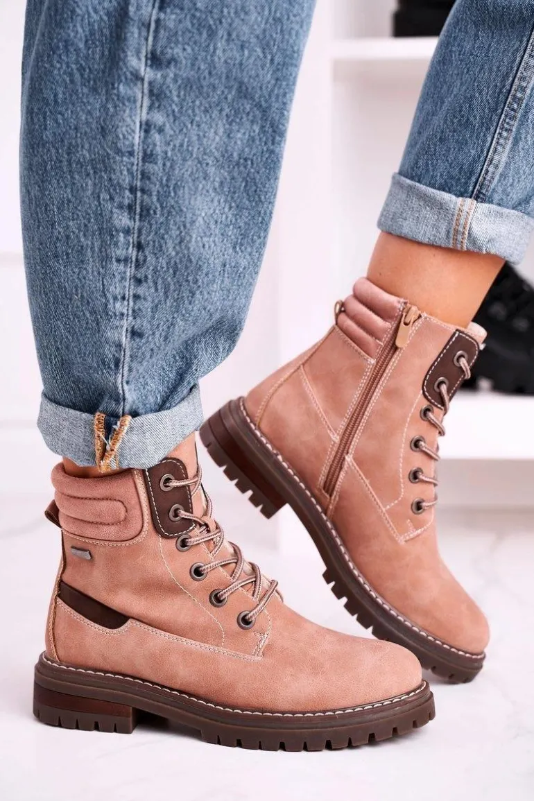 Damskie Ocieplane Workery Trapery Różowe Timber