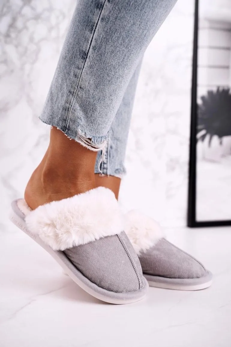 Damskie Papcie Klapki z Futerkiem Szare Homely