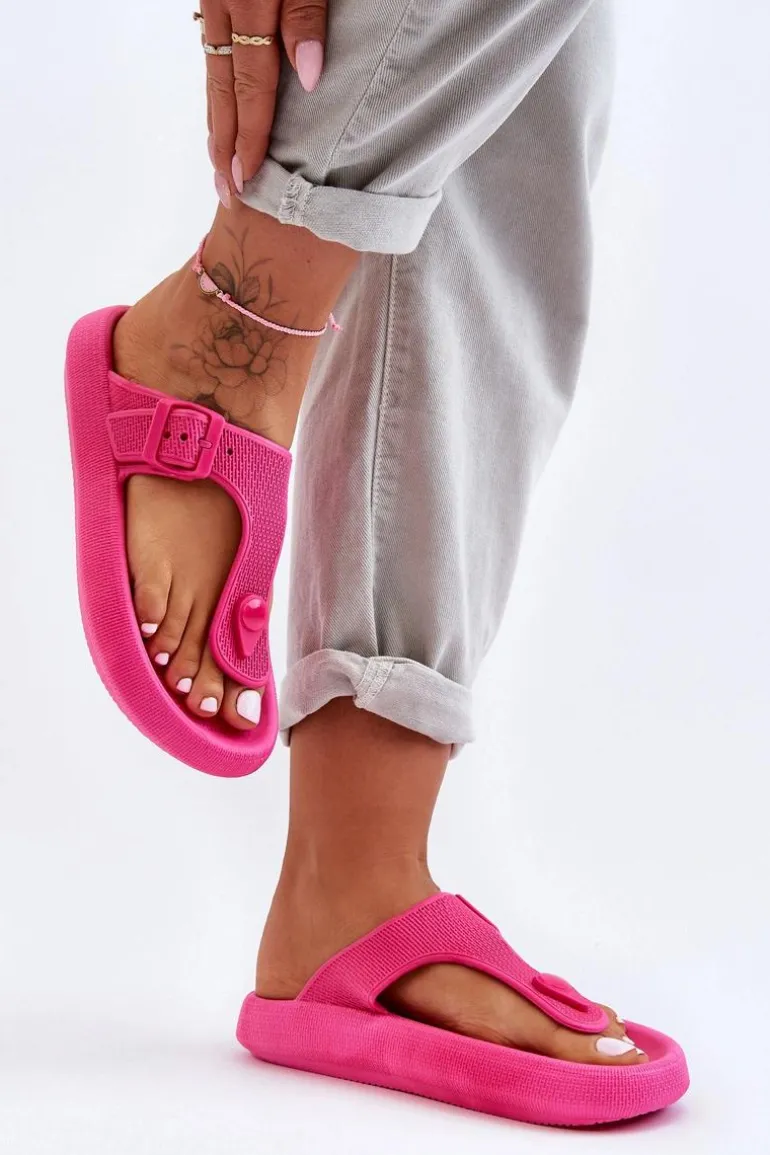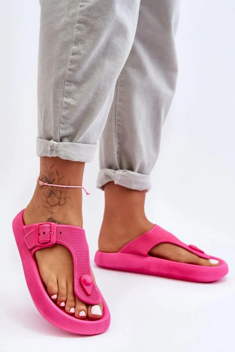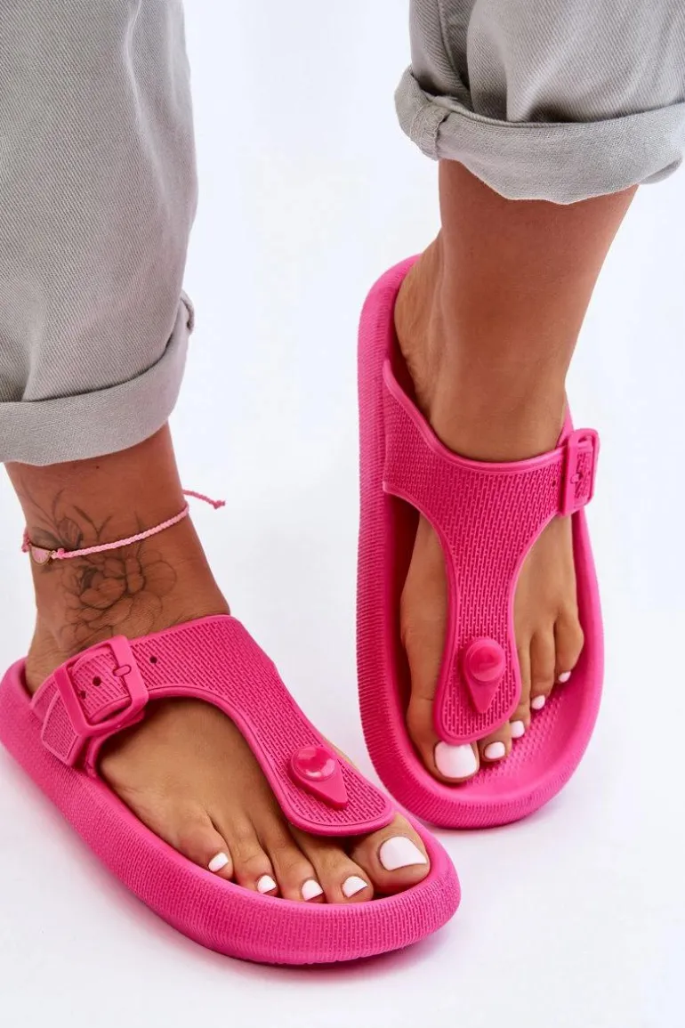 Miękkie, damskie japonki zostały wykonane w całości z piankowego tworzywa. Model ten został osadzony na masywnej platformie. Posiadają zapięcie w postaci klamry, co umożliwia dopasowanie buta do stopy. Idealne obuwie na letni sezon. Klapki te są niezwykle przewiewne i wygodne. Świetnie sprawdzą się także na basen czy plażę. Przy wyborze rozmiaru prosimy sugerować się tabelą rozmiarów.