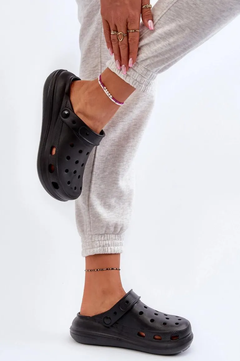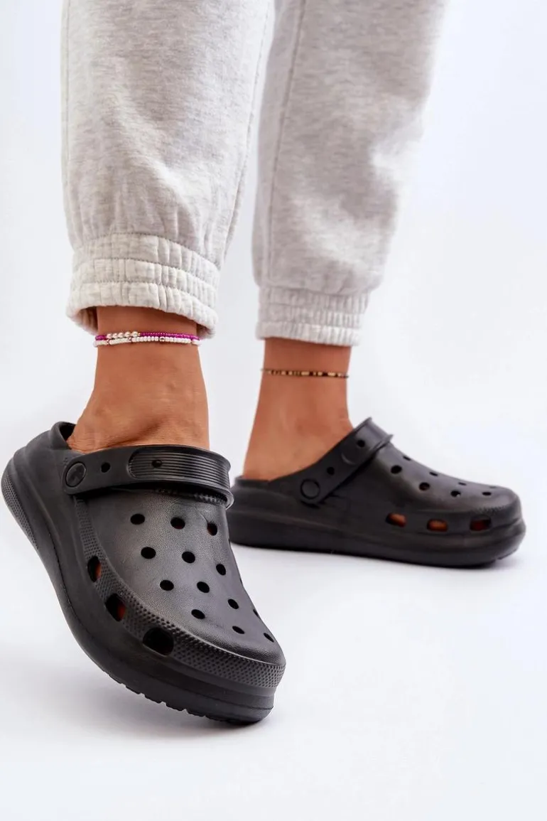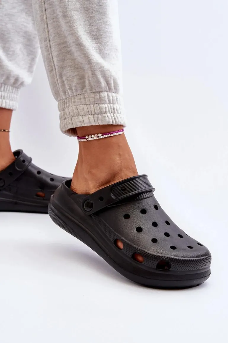 Klapki damskie wykonane z lekkiego, piankowego materiału. Ruchomy pasek zapewnia stabilność i chroni przed ślizganiem się stopy. Platforma zapewnia wygodę podczas noszenia. Dodatkowe otwory w cholewce pozwalają na odpowiedni przepływ powietrza, zapewniając komfort nawet podczas gorących dni. Przy wyborze rozmiaru prosimy sugerować się tabelą rozmiarów.