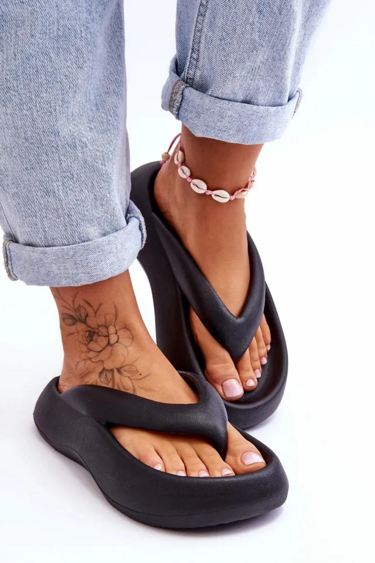 Wygodne, damskie japonki wykonane w całości z piankowego tworzywa. Model ten został osadzony na masywnej platformie, dzięki któremu są bardzo komfortowe w użytkowaniu. Ten wyjątkowy fason świetnie sprawdzi się w upalne dni! Klapki-japonki świetnie sprawdzą się na co dzień, na plażę czy basen. Przy wyborze rozmiaru prosimy sugerować się tabelą rozmiarów.