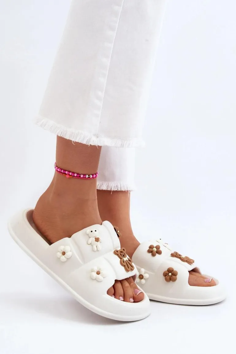 Urocze klapki damskie na szerokim pasku. Wykonane z piankowego tworzywa. Model ten posiada przyciągające uwagę ozdoby z przodu. Idealne do spacerów po plaży lub leniwego popołudnia na tarasie. Koniecznie musisz je mieć! Przy wyborze rozmiaru prosimy sugerować się tabelą rozmiarów.