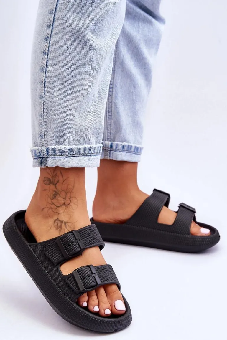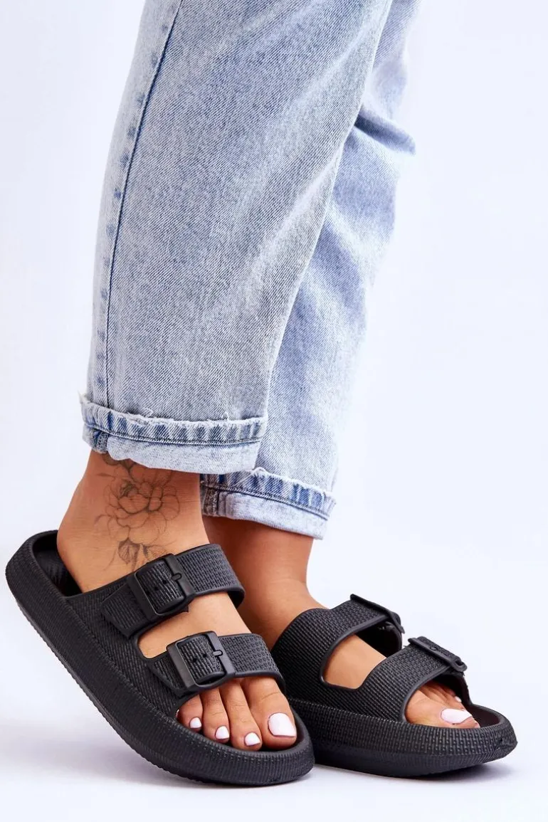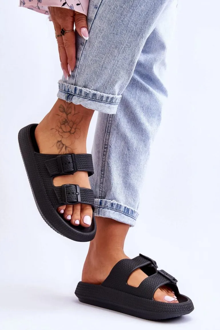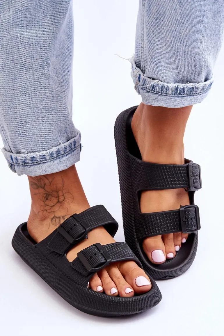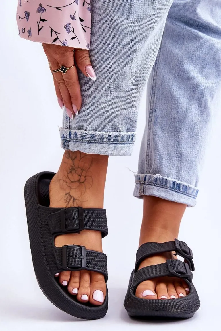 Klasyczne, damskie klapki zostały wykonane w całości z piankowego tworzywa. Posiadają klamry z tworzywa sztucznego z regulowanymi paskami. Model ten został osadzony na masywnej platformie. Idealne obuwie na letni sezon. Klapki te są niezwykle przewiewne i wygodne. Świetnie sprawdzą się także na basen czy plażę. Przy wyborze rozmiaru prosimy sugerować się tabelą rozmiarów.