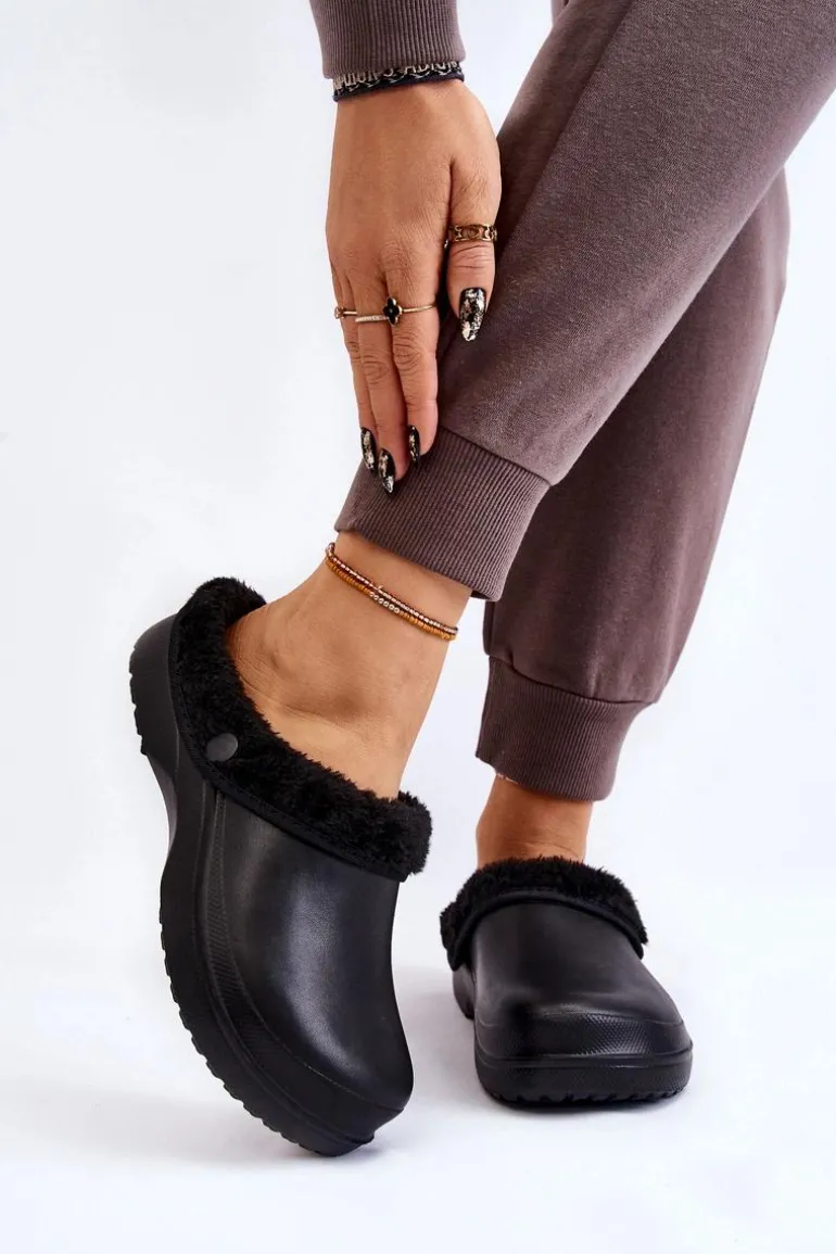 Damskie kroksy zostały wykonane z wysokojakościowego, piankowego tworzywa typu EVA. Wnętrze kroksów zostało ocieplone eko futerkiem. Buty zostały osadzone na masywnym, płaskim obcasie oraz platformie. Idealny model do pracy w ogrodzie czy użytkowania w domu zamiast papci. Klasycznie wsuwany model. Przy wyborze rozmiaru prosimy sugerować się tabelą rozmiarów.