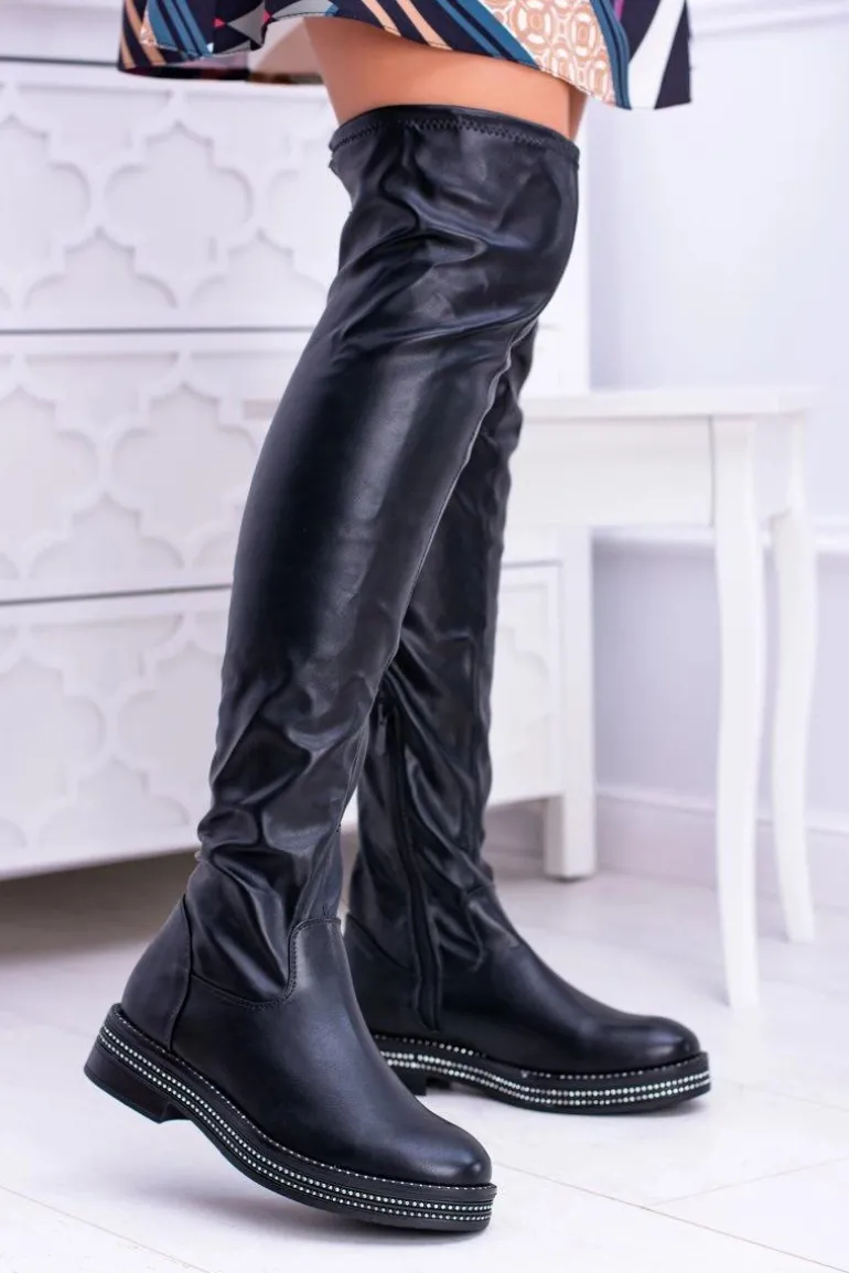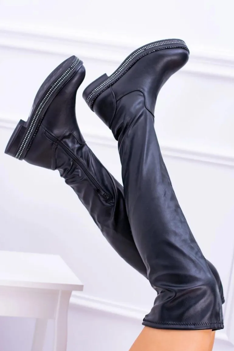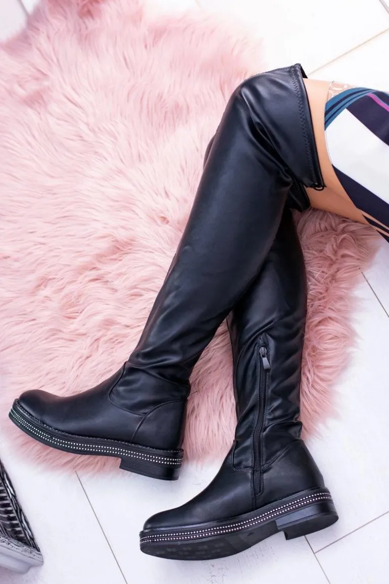 Damskie Płaskie Kozaki za Kolano Czarne Malata