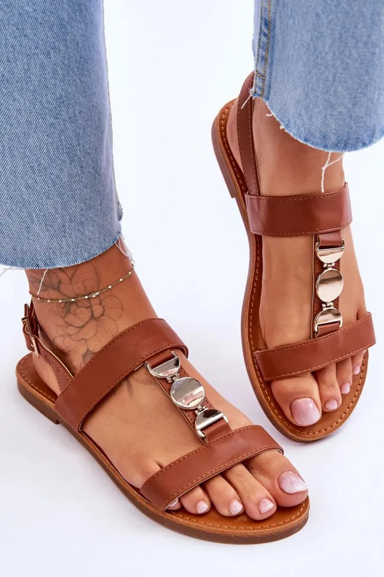 Damskie sandałki zostały wykonane z eko skóry. Model ten posiada zdobienie na paseczku w postaci kół. Sandałki są zapinane na regulowany pasek ze sprzączką. Wygodna wkładka z eko skóry zapewni komfort podczas użytkowania obuwia. Sandałki osadzono na płaskim obcasie z antypoślizgową podeszwą. Przy wyborze rozmiaru prosimy kierować się tabelą rozmiarów.