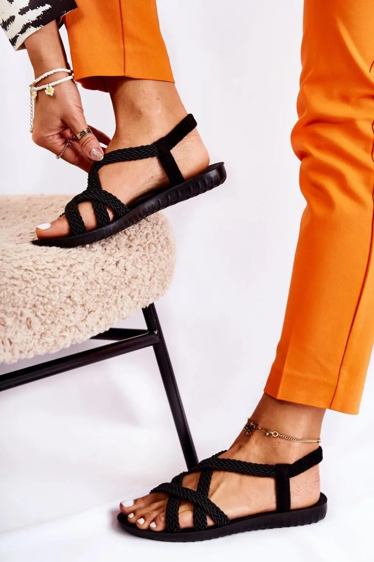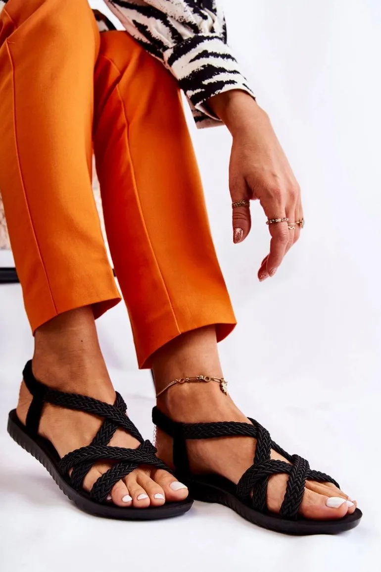 Wyjątkowe sandały damskie osadzone na delikatnej platformie. Buty te posiadają plecione paseczki. Model wykonany z połączenia materiału oraz eko zamszu. Sandałki te są niezwykle wygodne i przewiewne. Wkładka wykonana z eko skóry pozwoli na komfortowe użytkowanie nawet przez cały dzień. Nosek odkryty, zaokrąglony. Świetnie sprawdzą się przede wszystkim do stylizacji boho. Przy wyborze rozmiaru prosimy sugerować się tabelą rozmiarów.