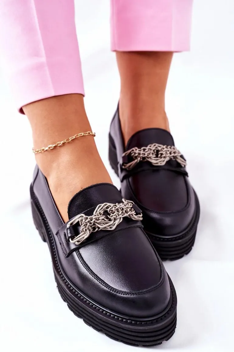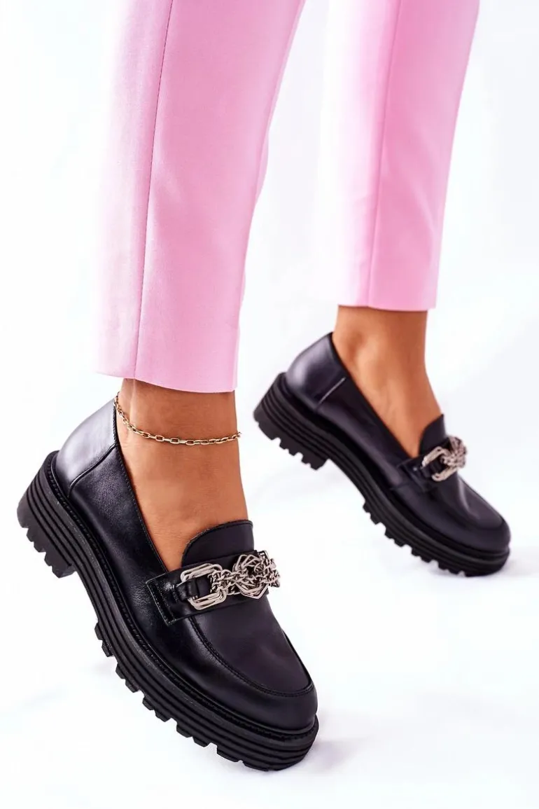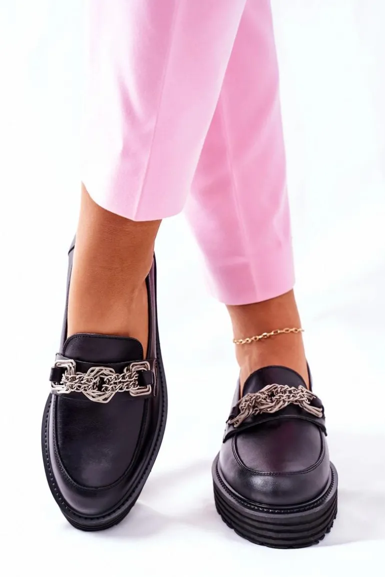 Damskie Półbuty Loafery Skórzane Czarne Laura Messi 2383