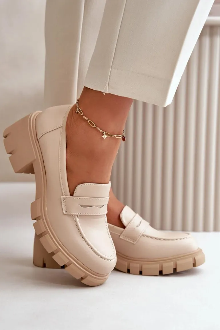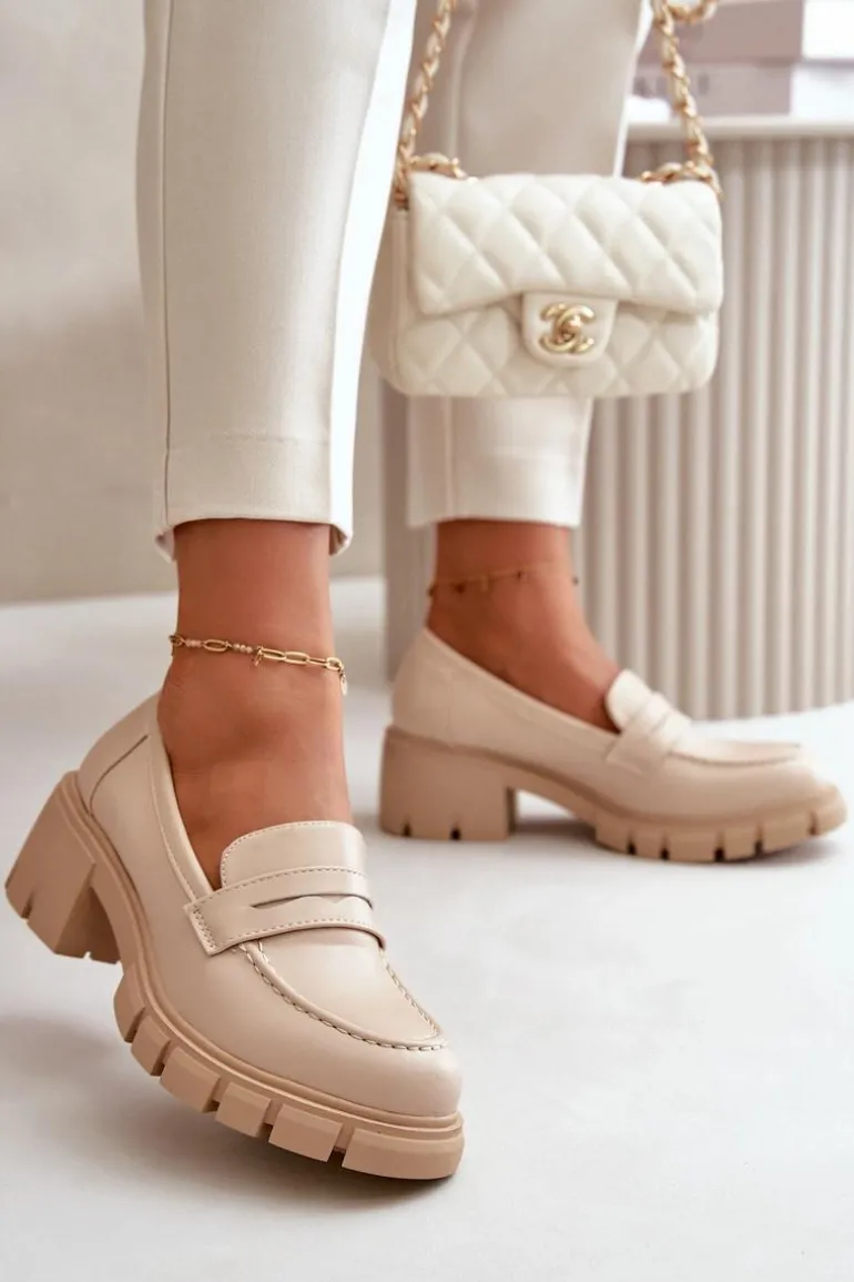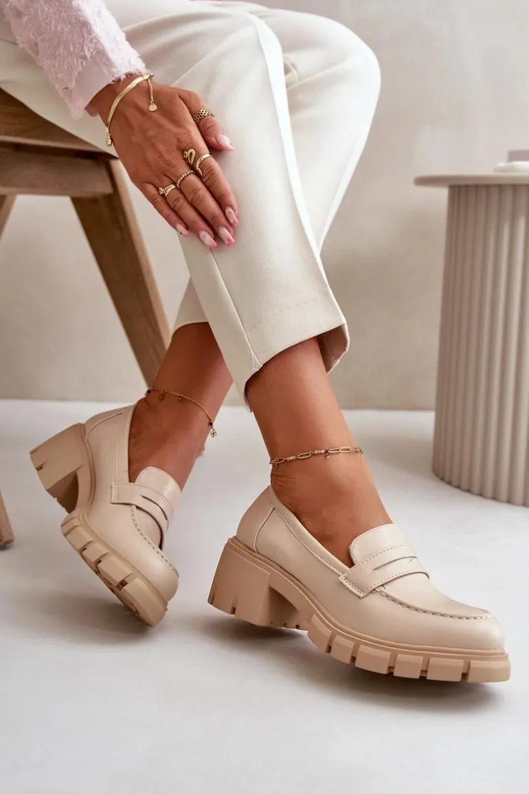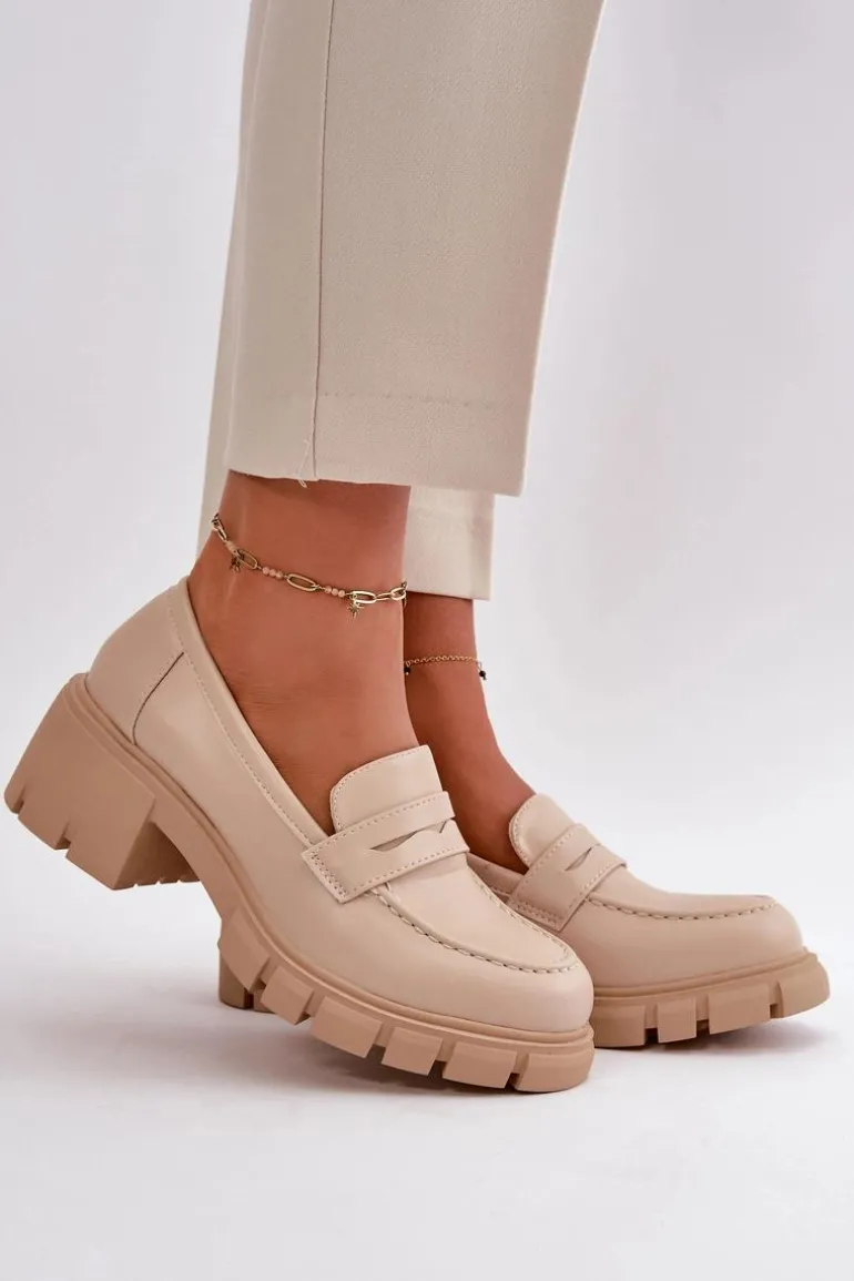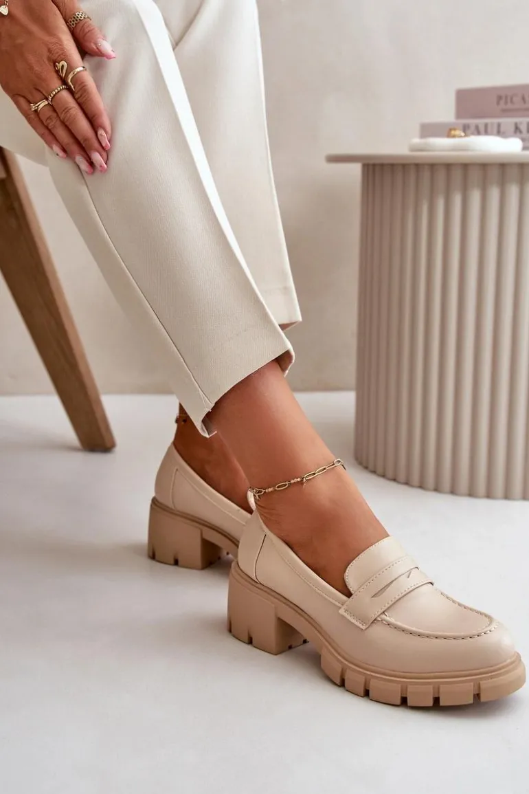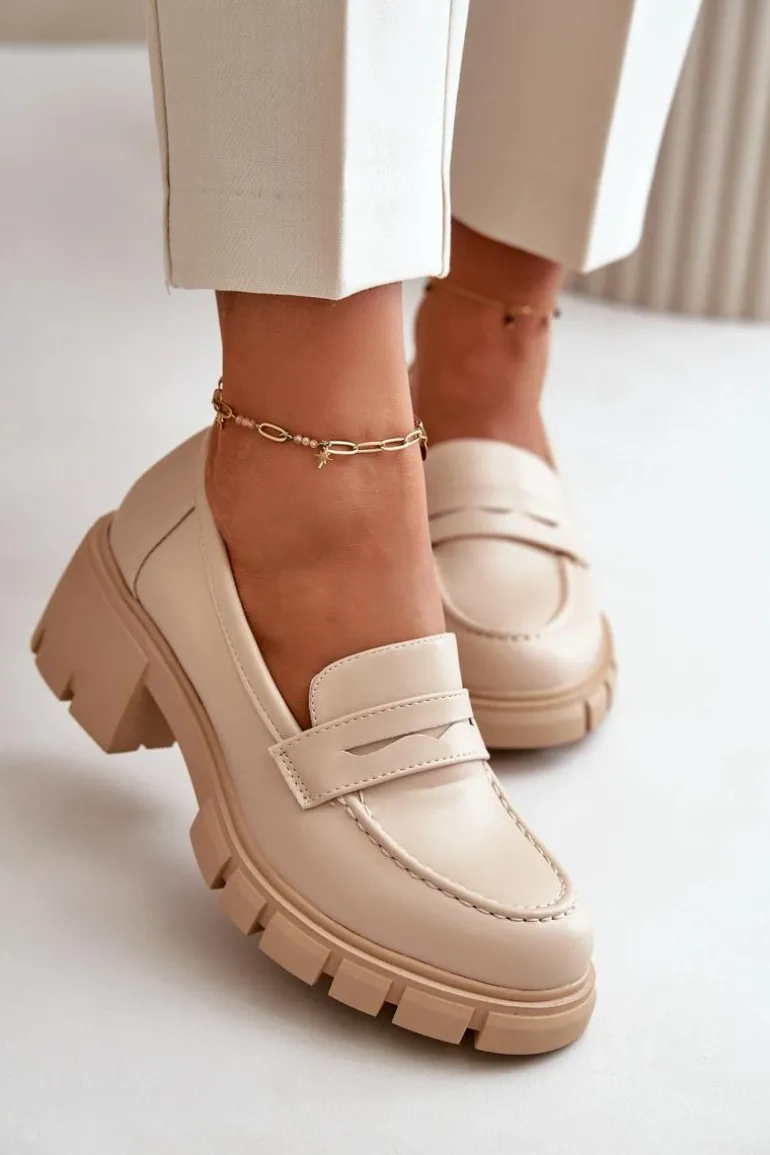 Damskie Półbuty Na Niskim Obcasie Z Eko Skóry Beżowe Menloa