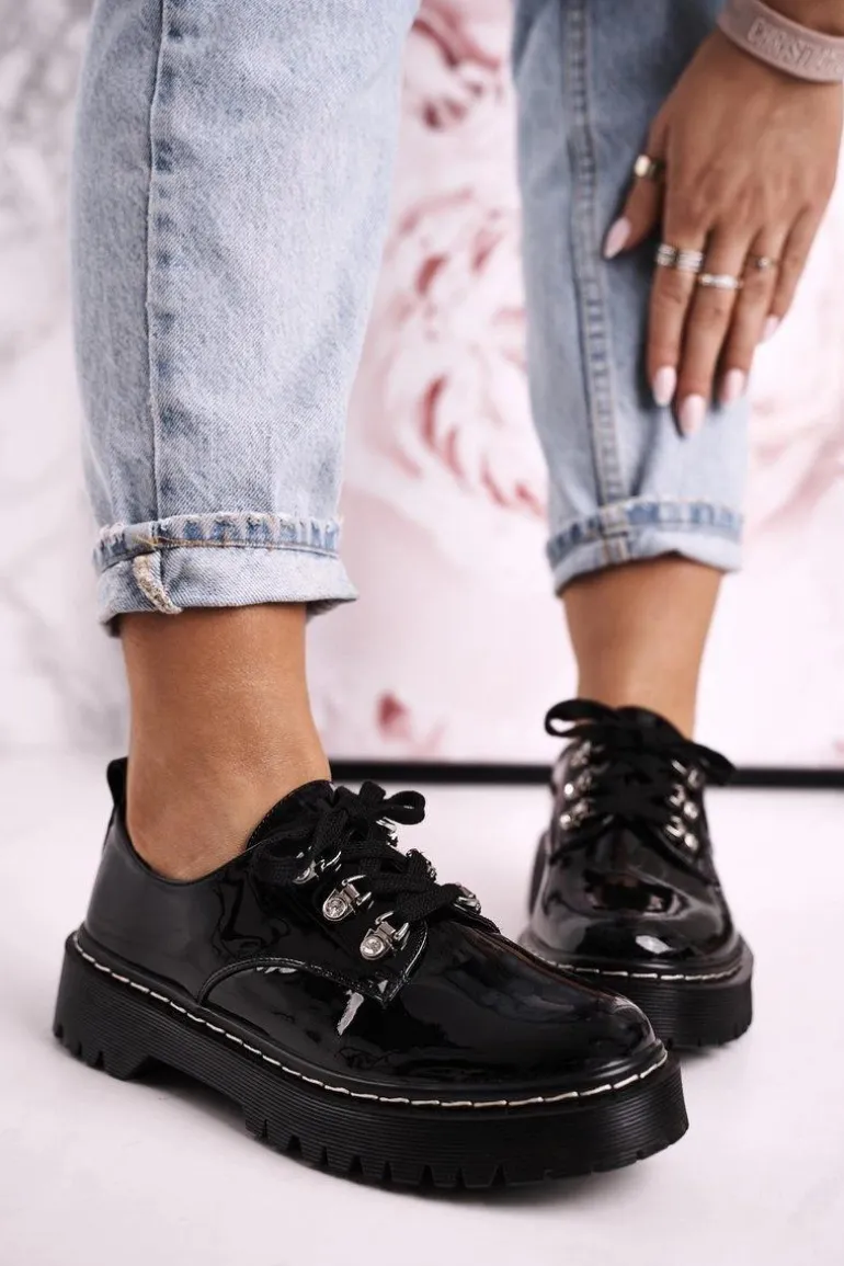 Damskie Półbuty Oxfordy Na Platformie S.Barski HX15 Lakierowane Czarne