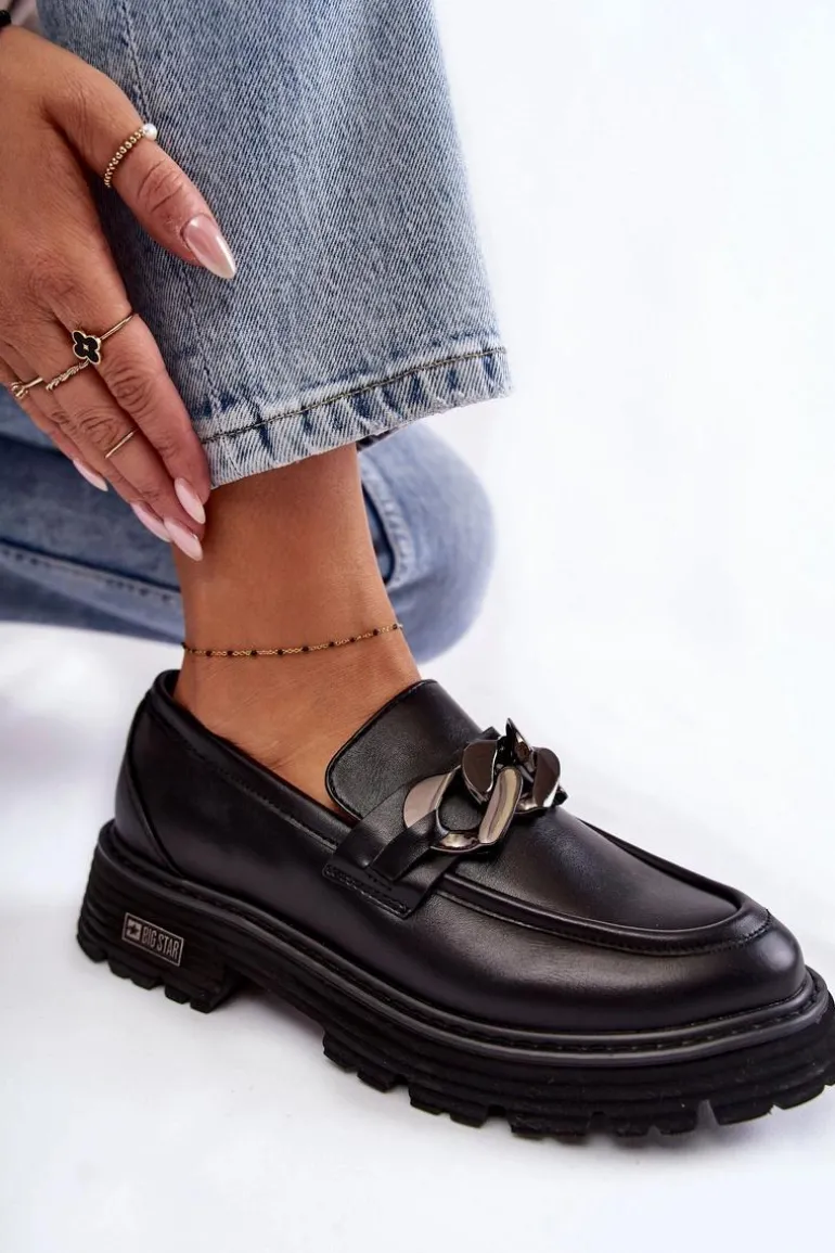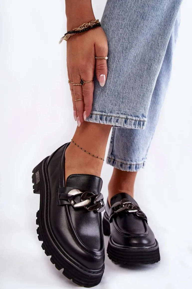 Modne półbuty damskie zostały wykonane z wysokiej jakości skóry ekologicznej. Na przodzie posiadają charakterystyczną ozdobę w postaci łańcucha. Buty te osadzono na platformie oraz płaskim obcasie. Podeszwa ze żłobieniami świetnie odizoluje od nierównego podłoża. Półbuty posiadają usztywniany zapiętek. Model idealny do wielu stylizacji! Wygodne, a zarazem modne. Koniecznie musisz je mieć! Przy wyborze rozmiaru prosimy sugerować się tabelą rozmiarów.