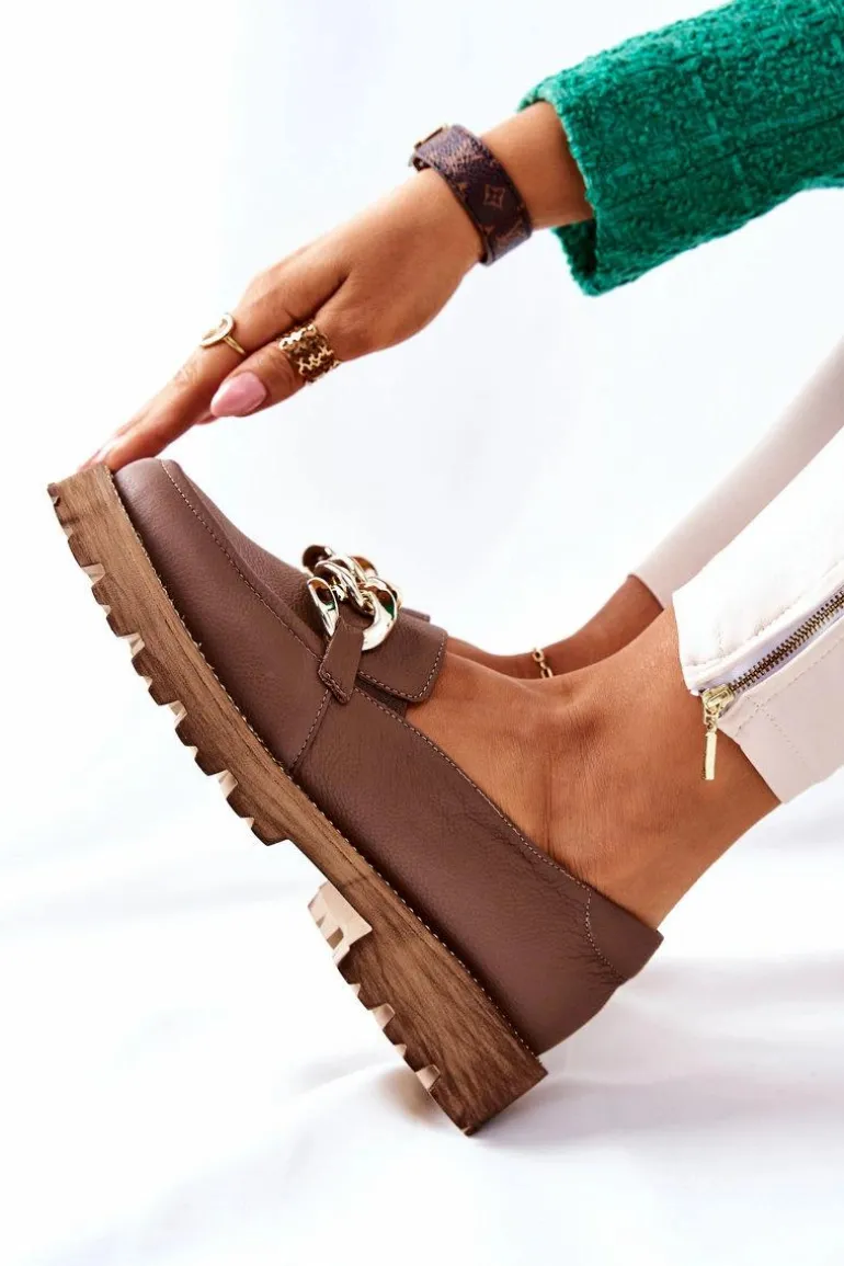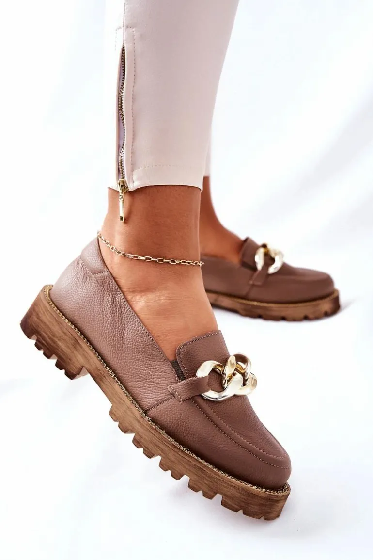 Klasyczne półbuty w stylu przepięknych loaferów! Buty zostały wykonane z wysokiej jakości skóry naturalnej. Charakterystyczne zdobienie w postaci łańcucha sprawi, że stworzymy z nimi wiele wspaniałych stylizacji. Wysoka podeszwa oraz obcas, który uniesie naszą sylwetkę. Przy wyborze rozmiaru prosimy sugerować się tabelą rozmiarów.