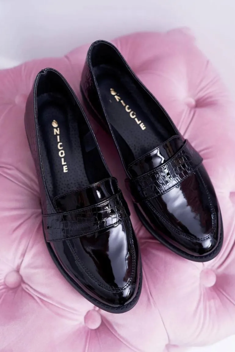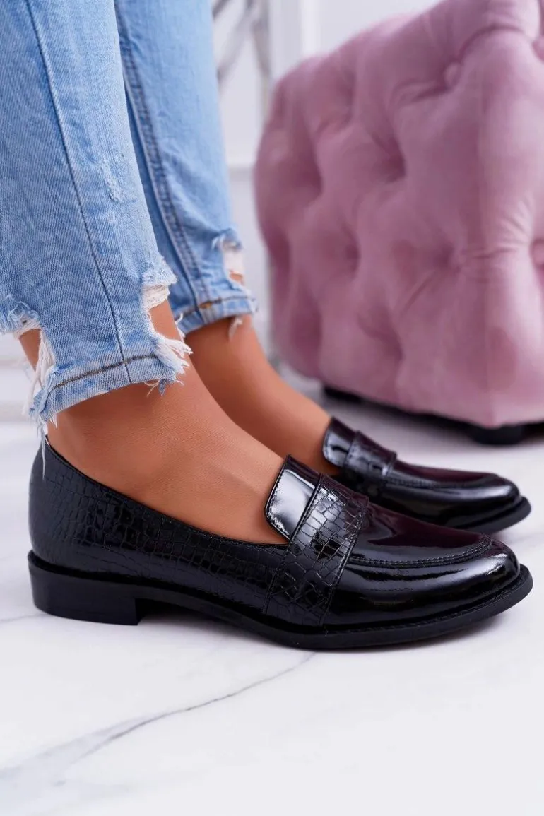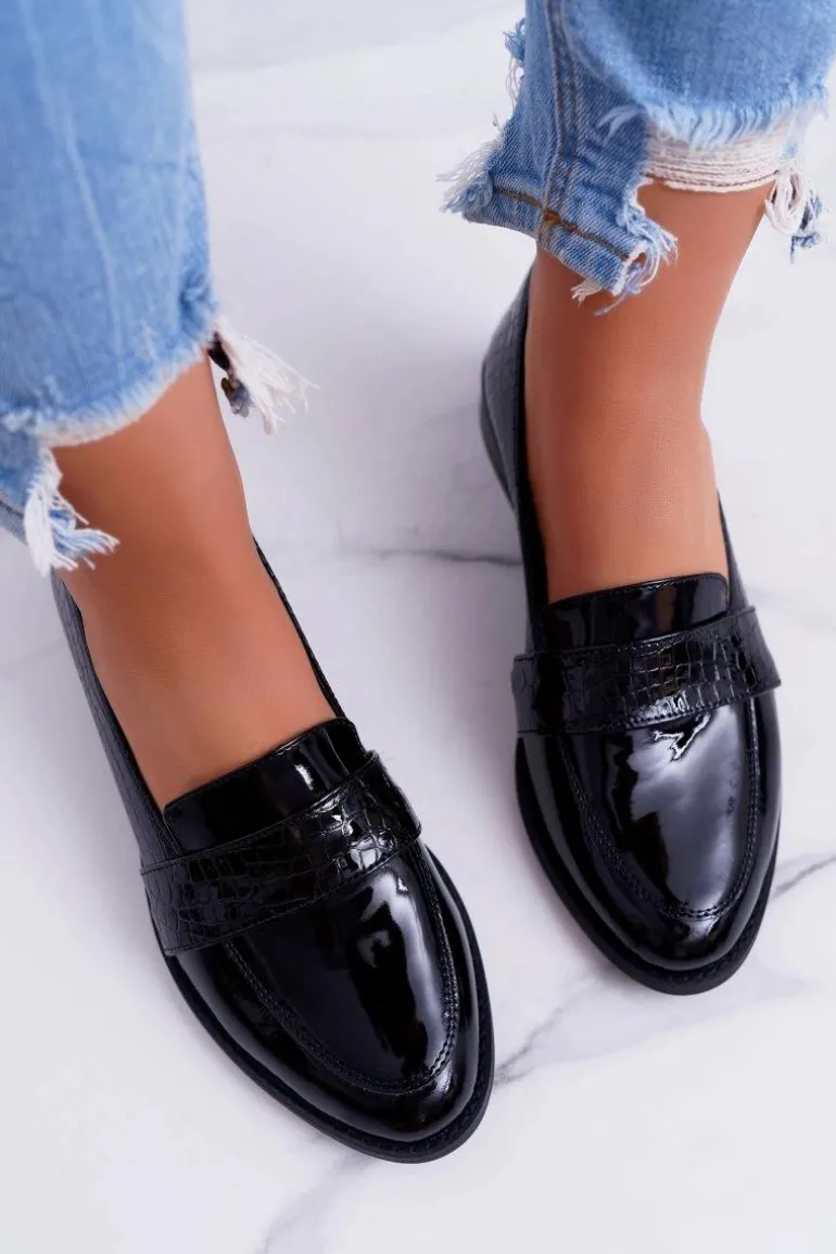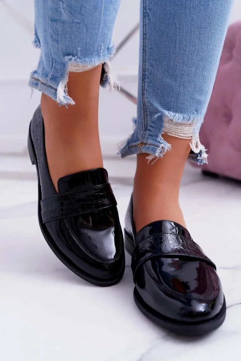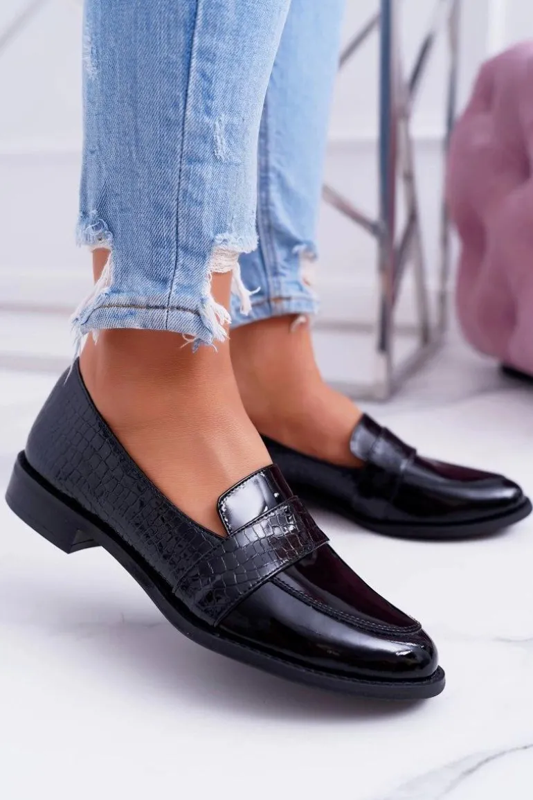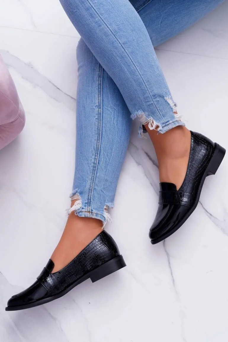 Damskie Półbuty Wsuwane Skórzane Lordsy Czarne Dynasty