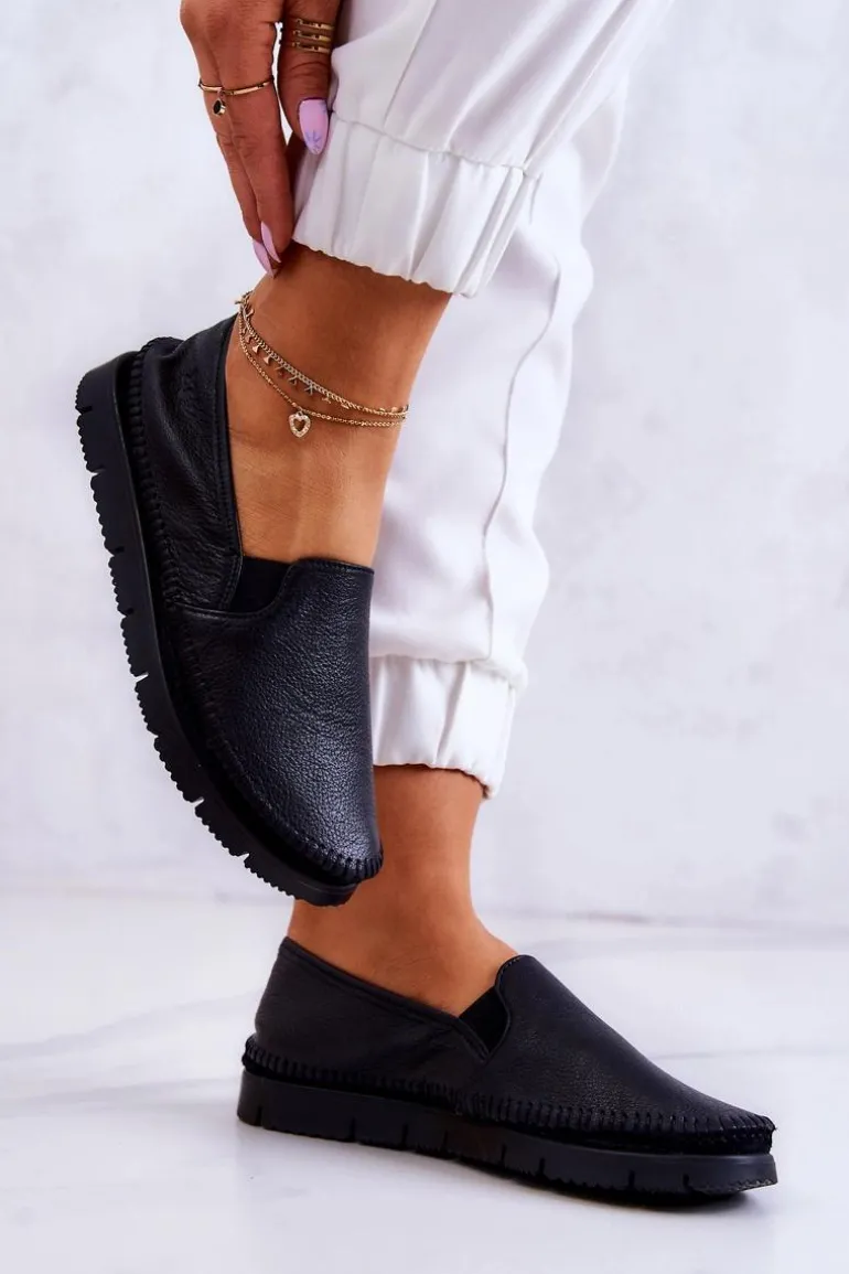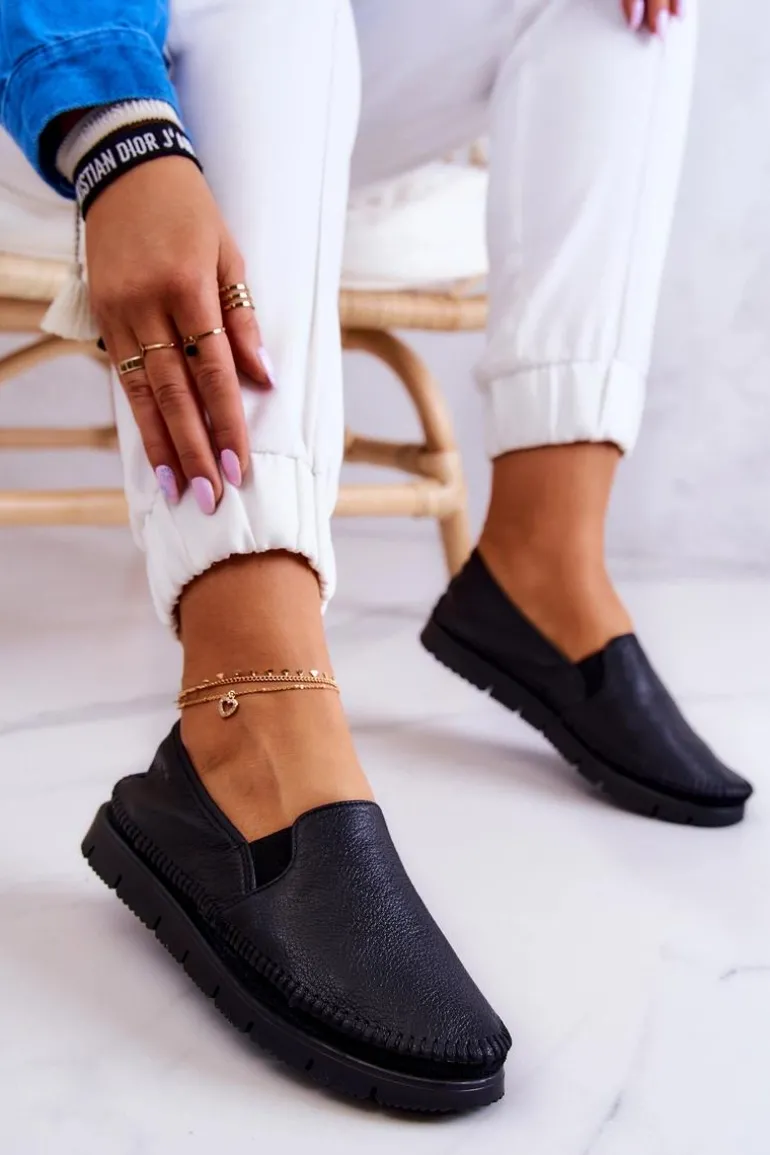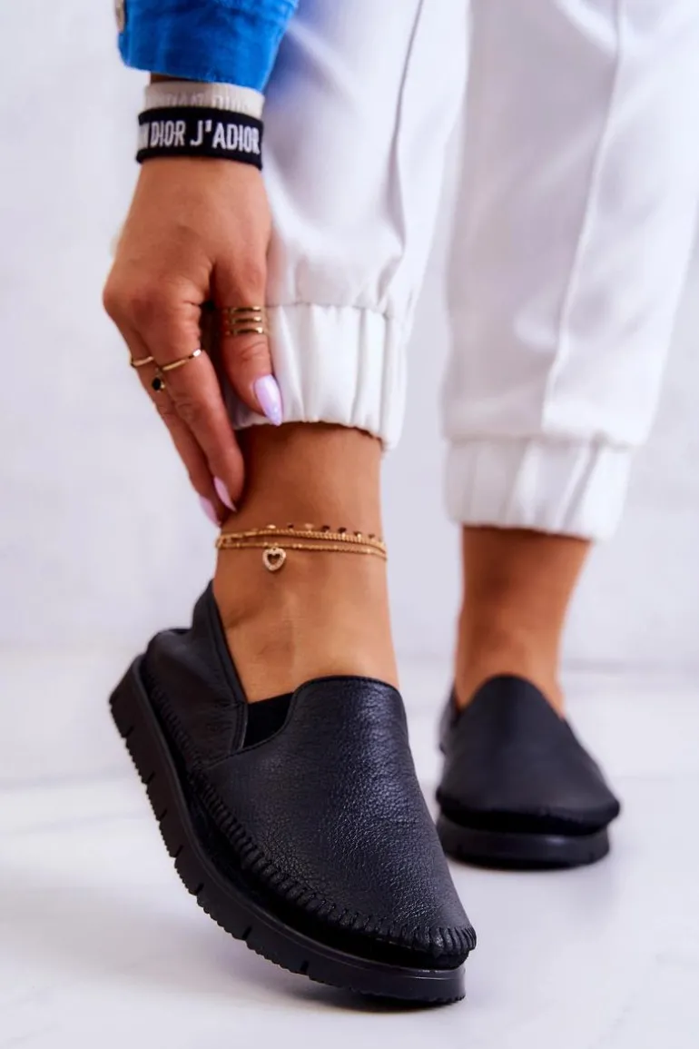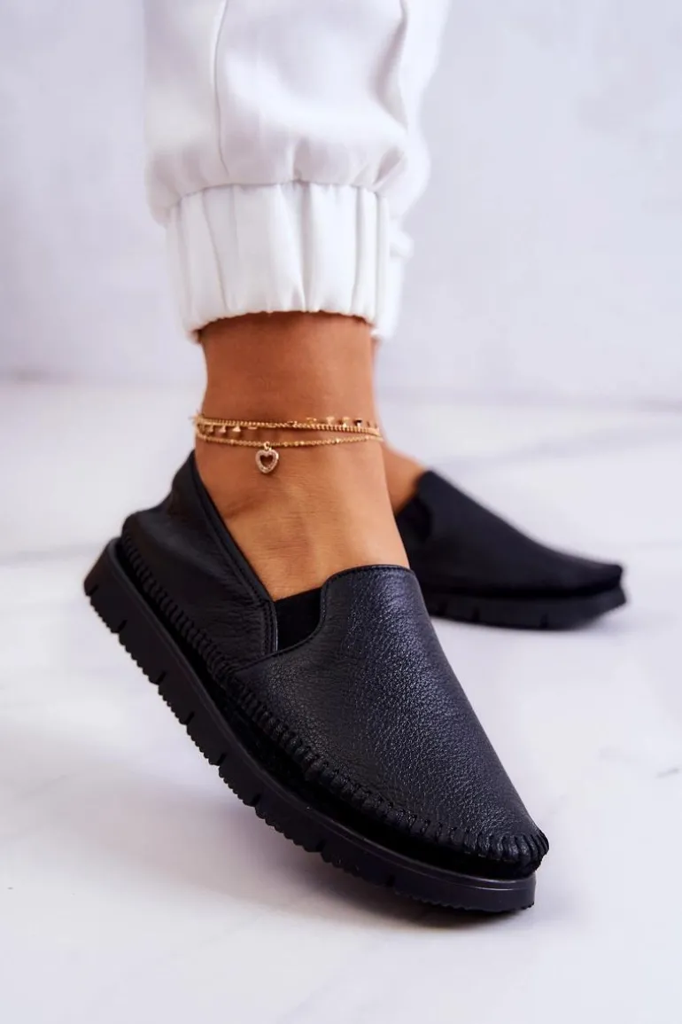 Damskie Półbuty Wsuwane Skórzane Maciejka 03512-01 Czarne