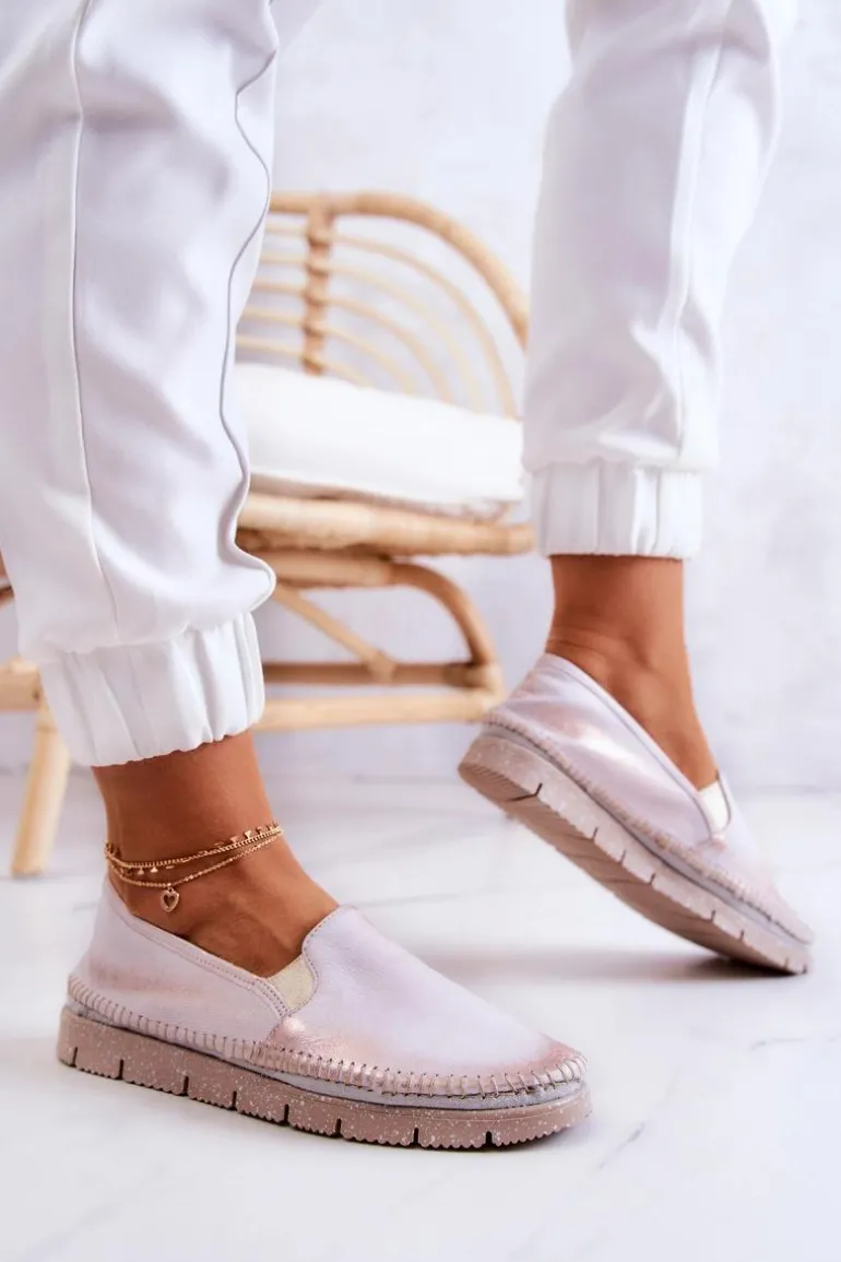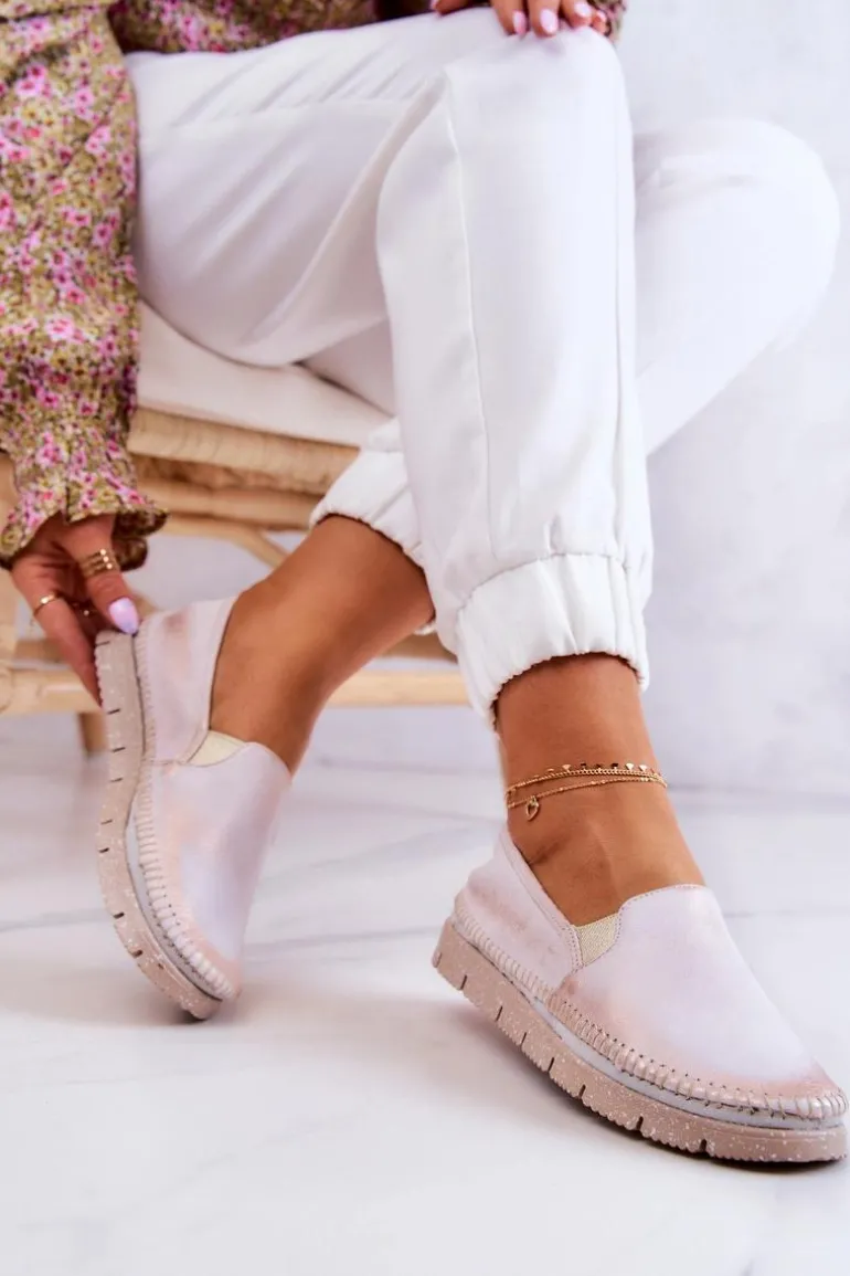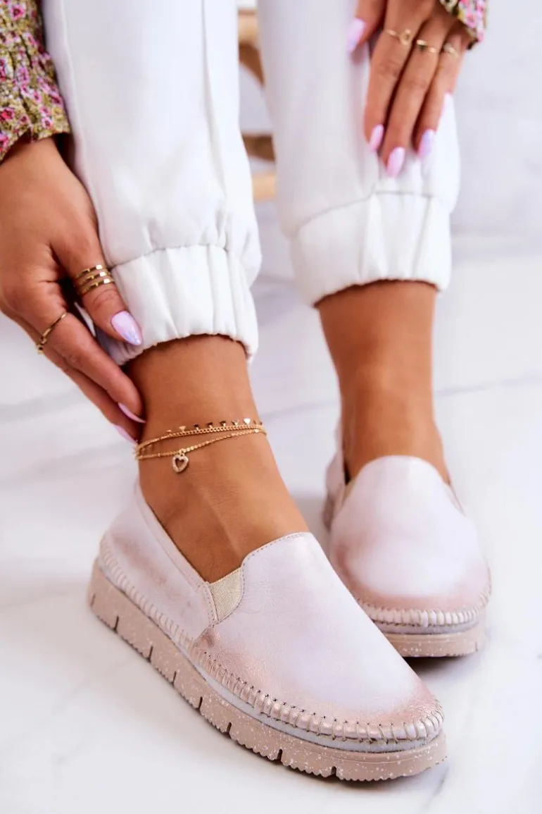 Damskie Półbuty Wsuwane Skórzane Maciejka 03512-28 Jasnoróżowe
