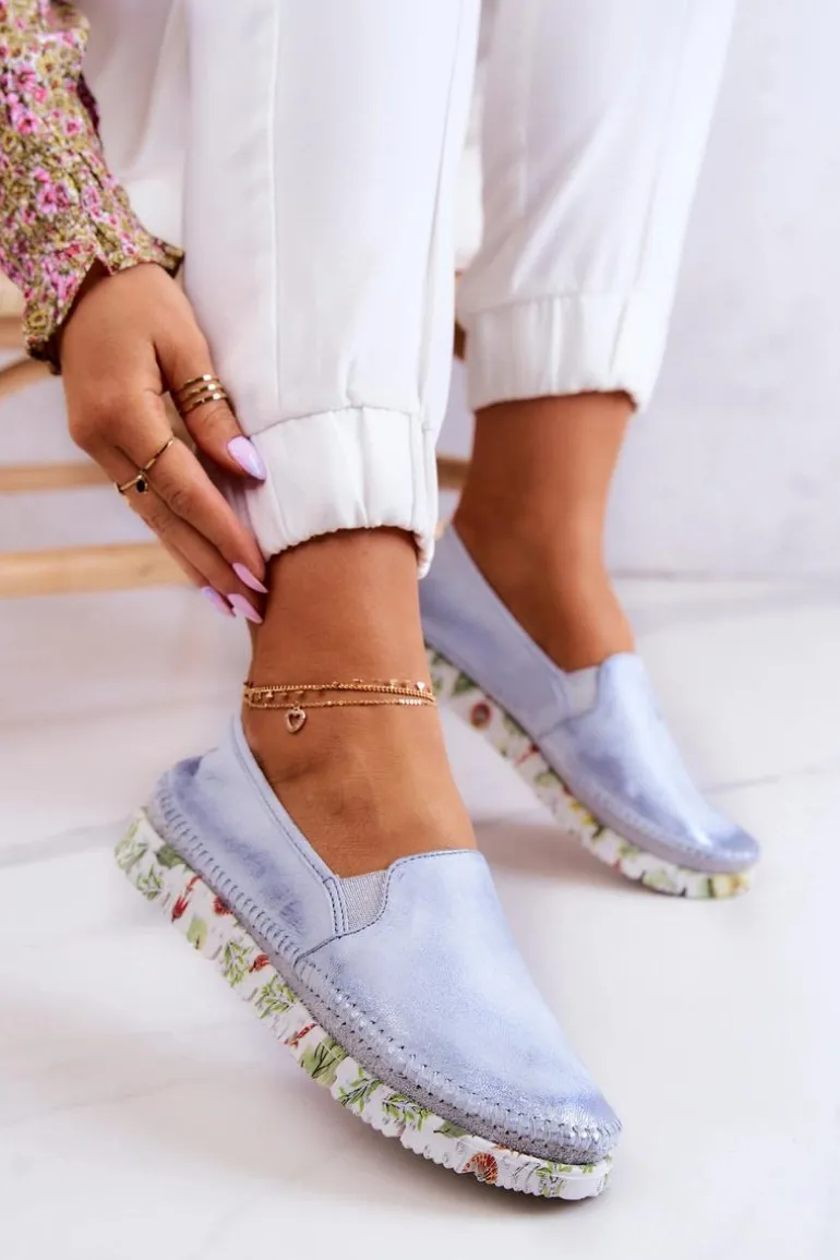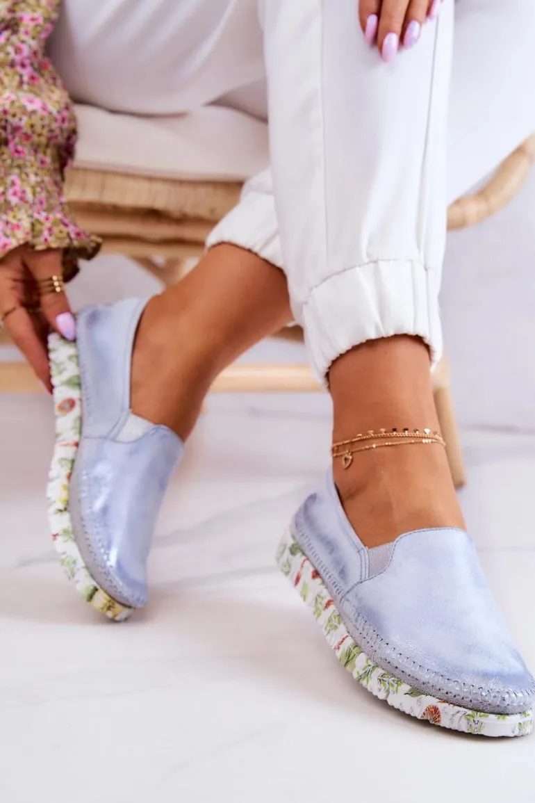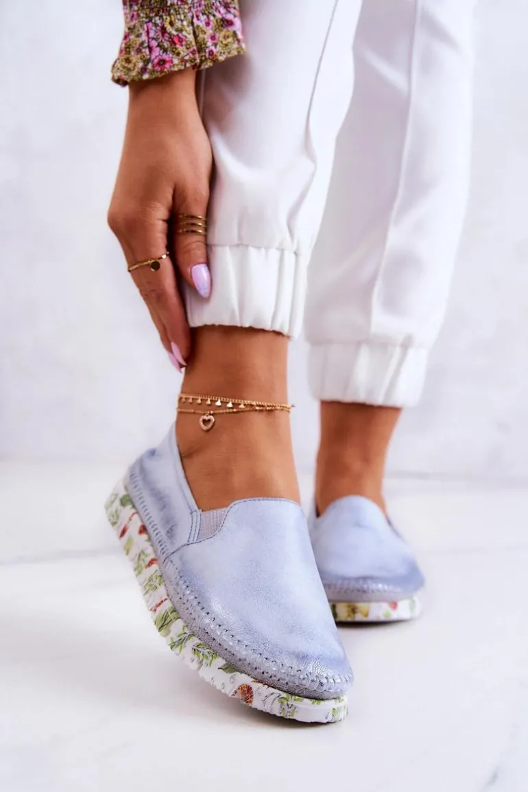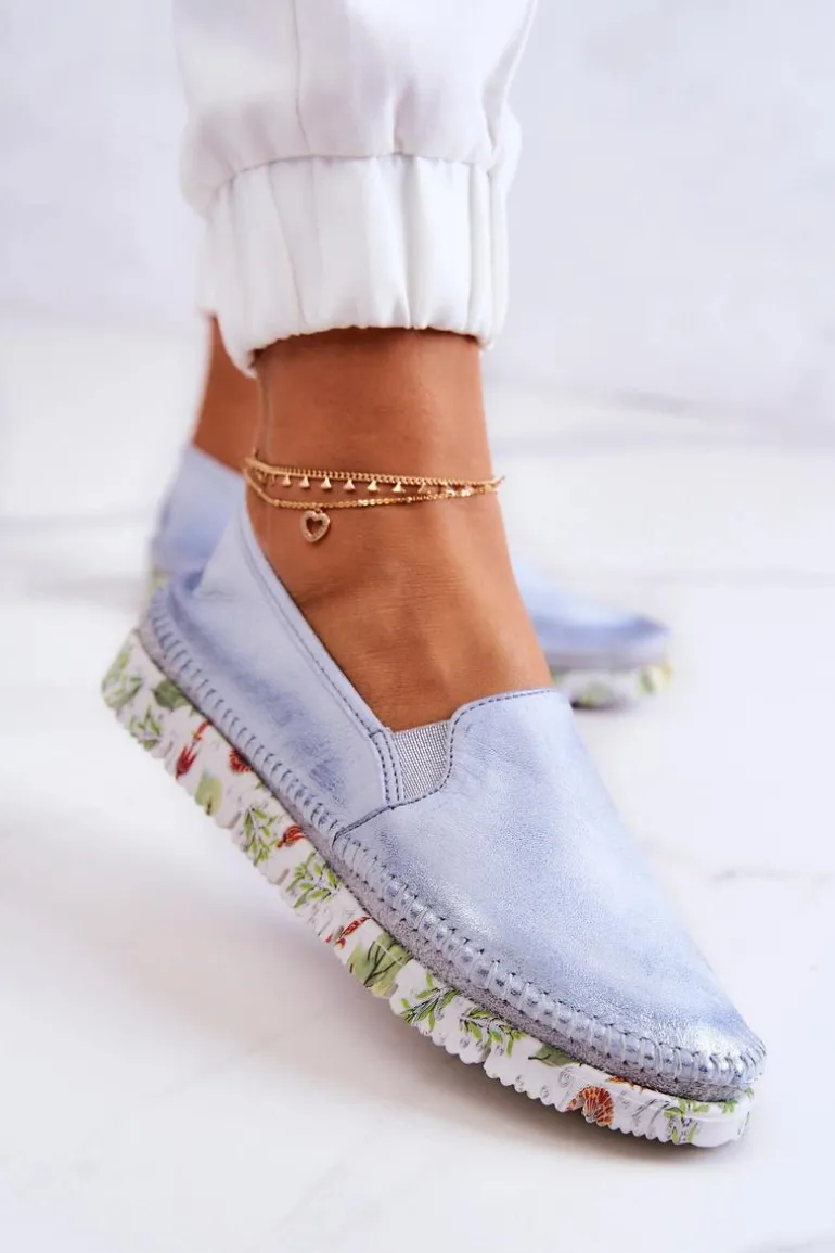 Damskie Półbuty Wsuwane Skórzane Maciejka 03512-40 Jasnoniebieskie