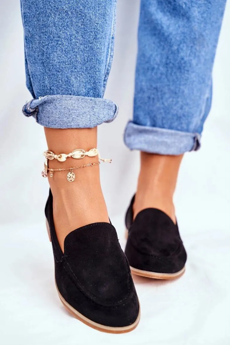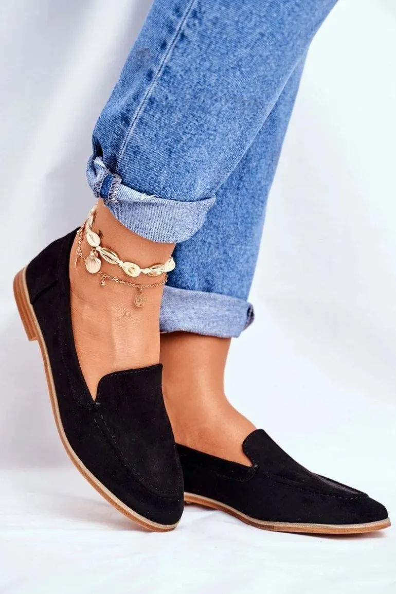 Damskie Półbuty Wsuwane Zamszowe Czarne Twinky