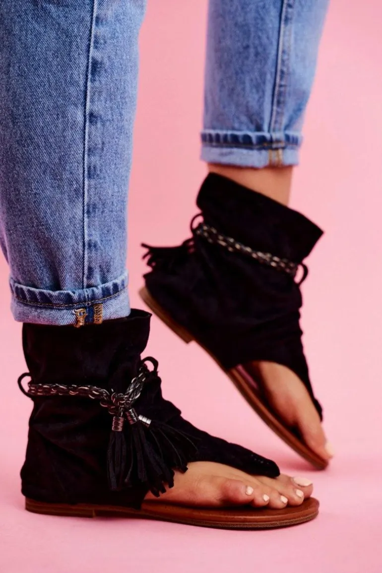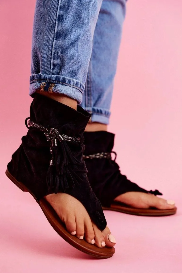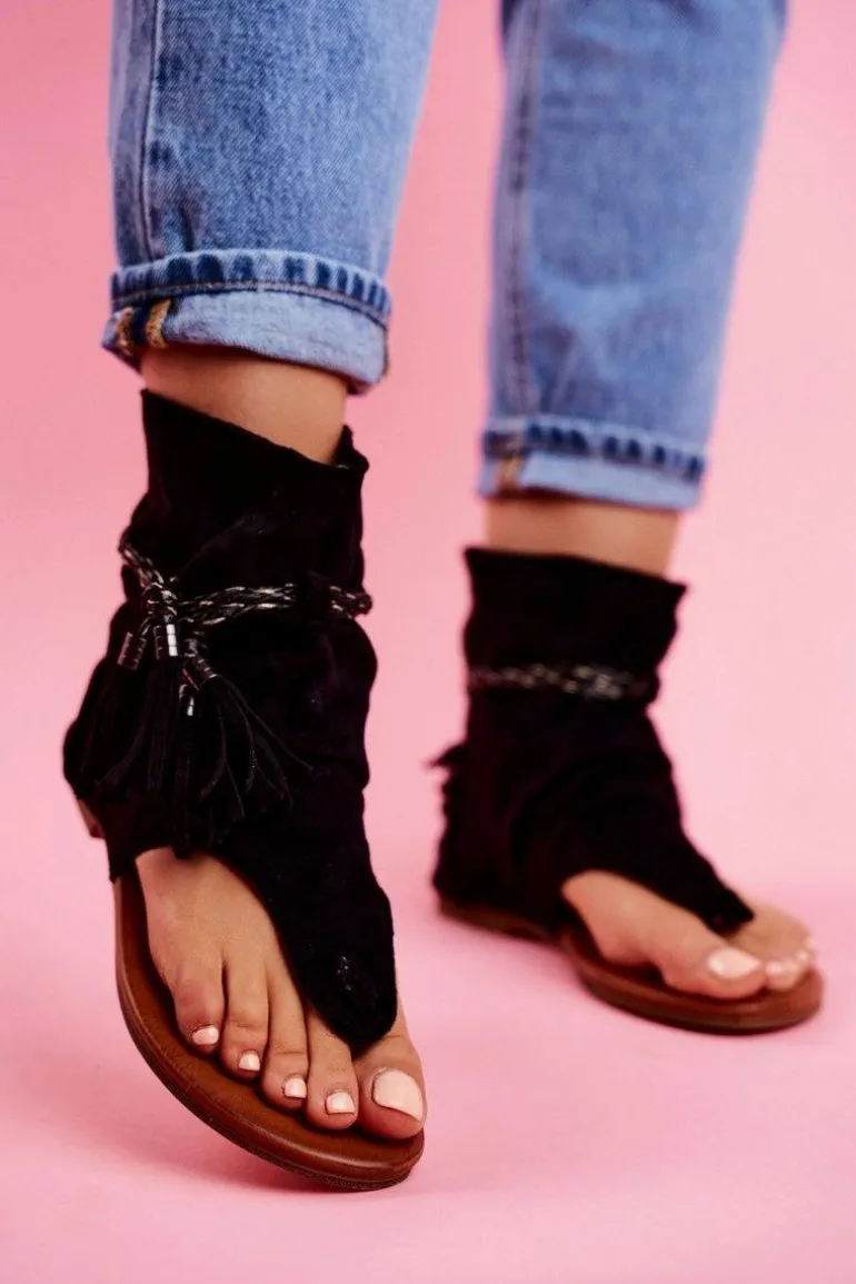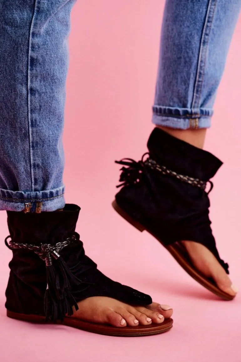 Damskie Sandałki Japonki Z Cholewką Czarne SL1011 Madrit