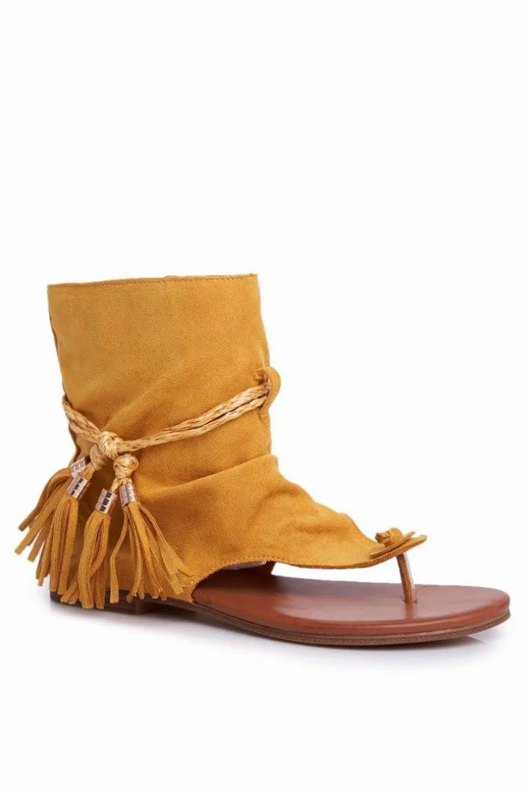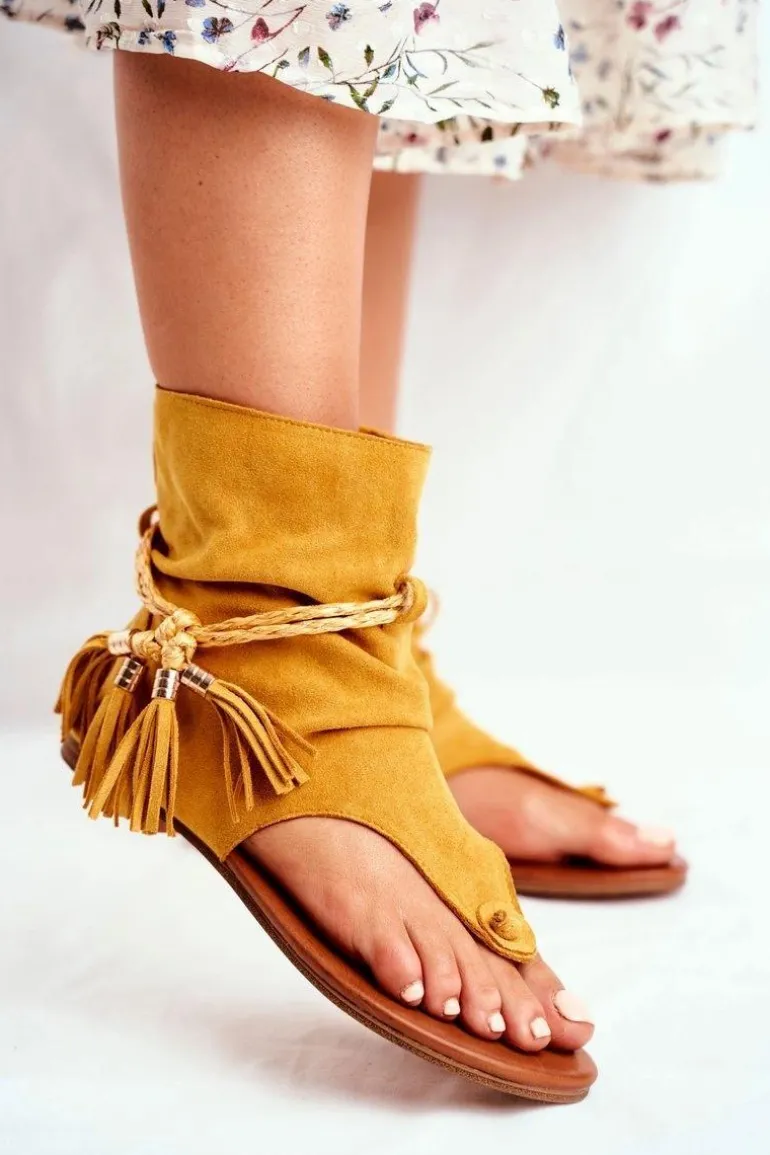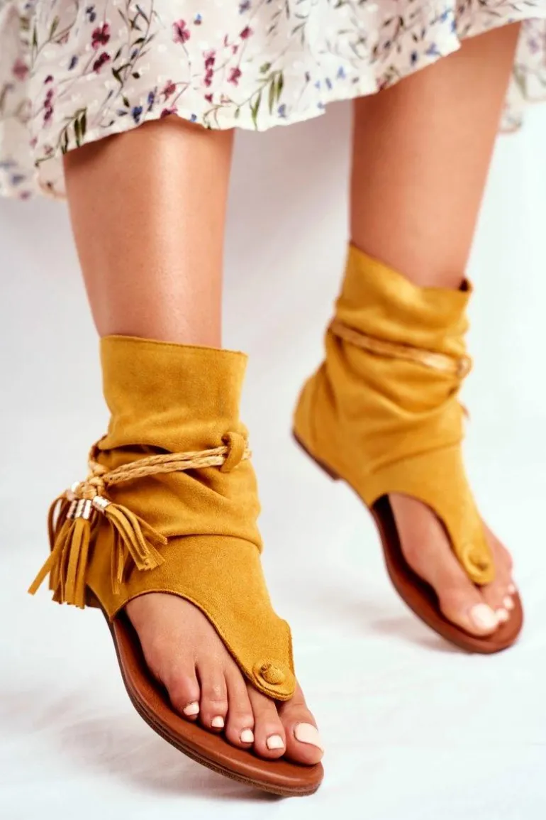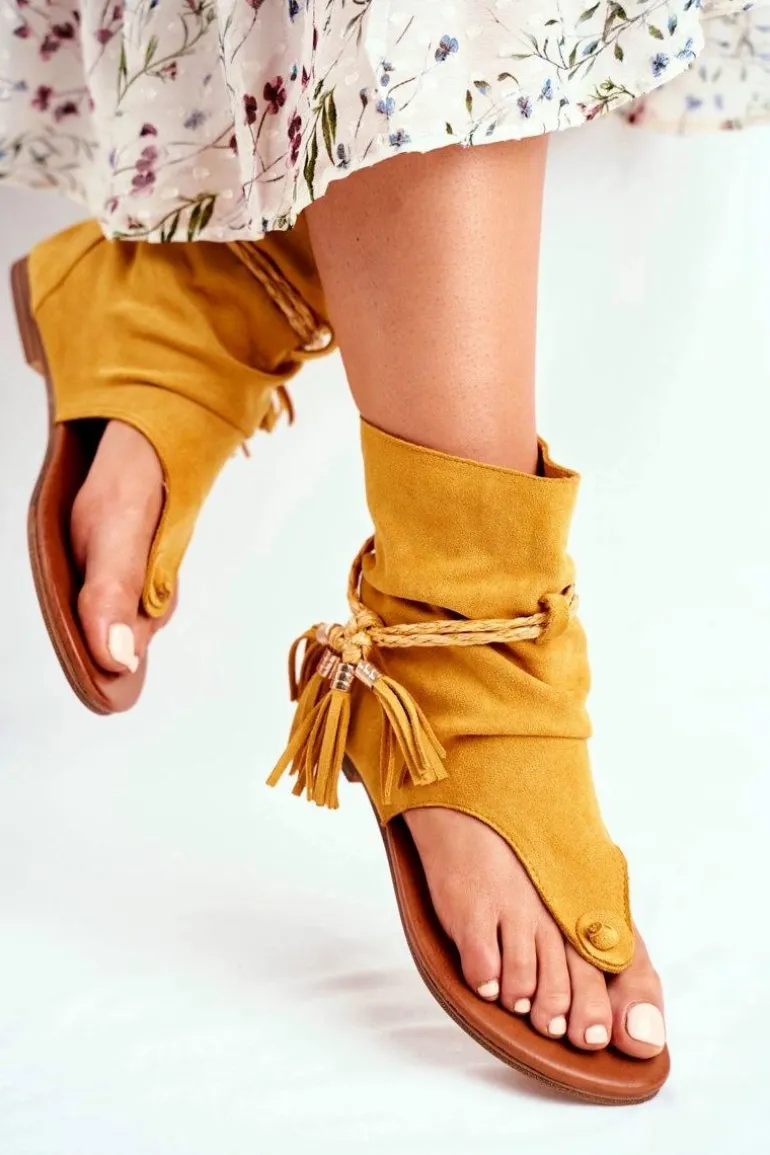 Damskie Sandałki Japonki Z Cholewką Żółte SL1011 Madrit