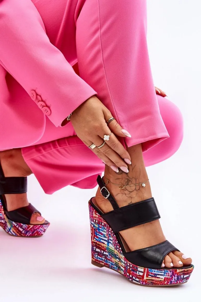 Damskie Sandałki Na Koturnie Czarne Calderia