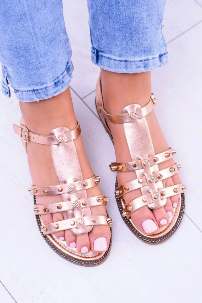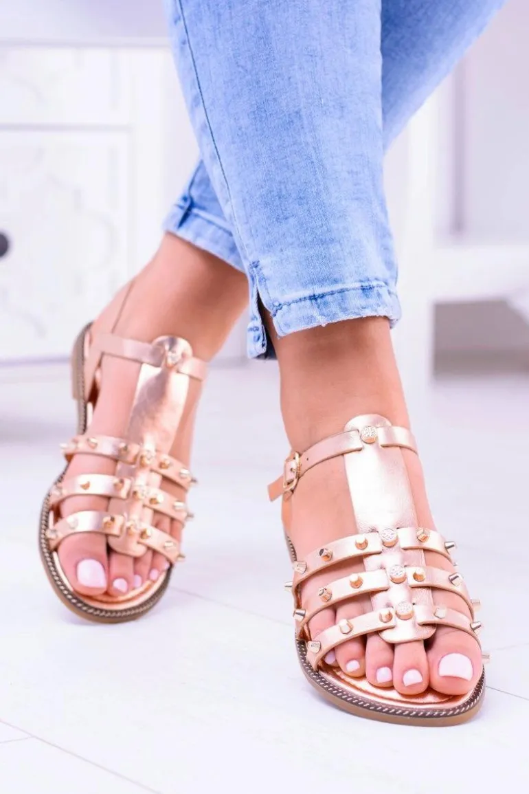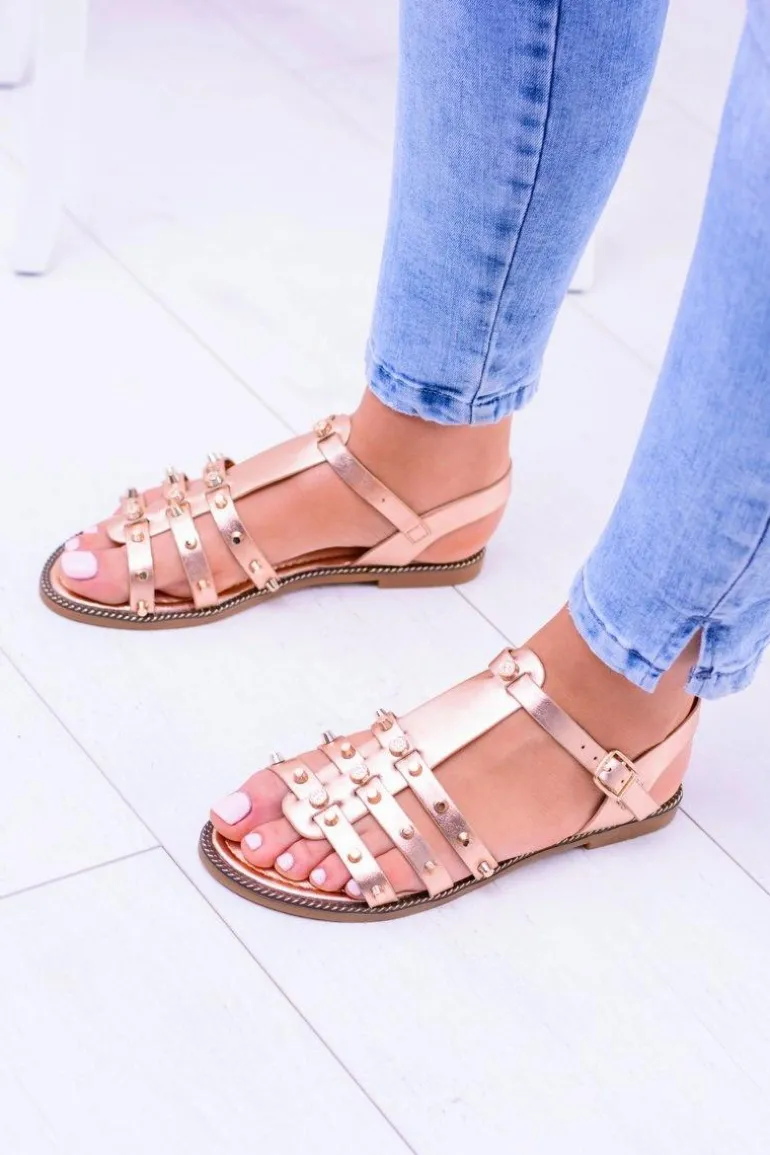 Damskie Sandałki z Ćwiekami Aglet Różowe Złoto