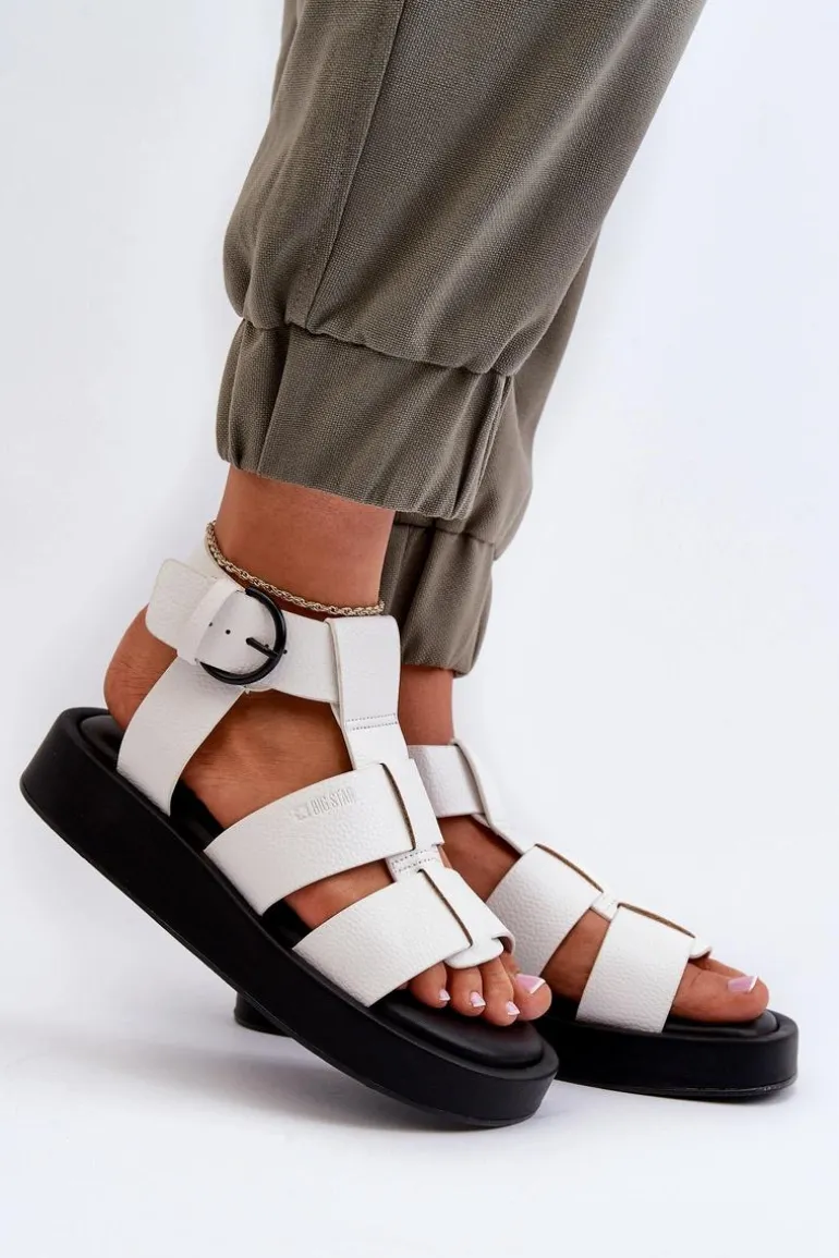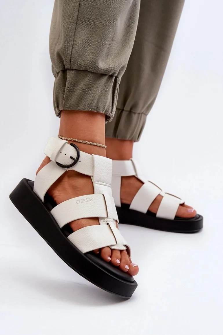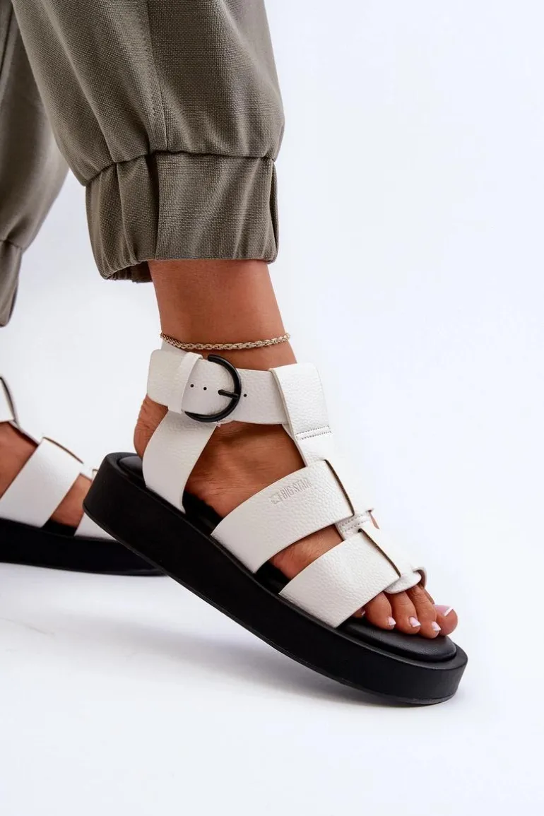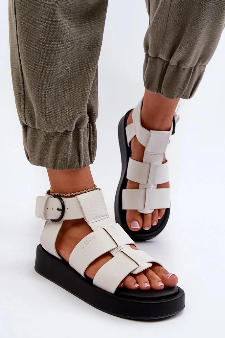 Sandały damskie marki Big Star to doskonałe połączenie stylu i wygody. Osadzone na platformie, zapewniają dodatkową wysokość, jednocześnie gwarantując stabilność podczas chodzenia. Zapinane na regulowany pasek ze sprzączką, można je łatwo dopasować do stopy. Miękka wkładka sprawia, że każdy krok jest przyjemny, a stopy czują się swobodnie i wygodnie, nawet podczas długich spacerów czy dni pełnych aktywności. Te sandały to nie tylko stylowy dodatek do letniej garderoby, ale także praktyczne obuwie, które zapewnia wygodę przez cały dzień. Przy wyborze rozmiaru prosimy sugerować się tabelą rozmiarów.