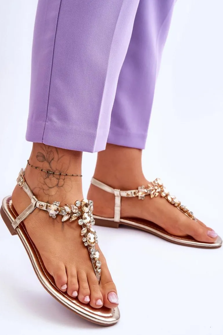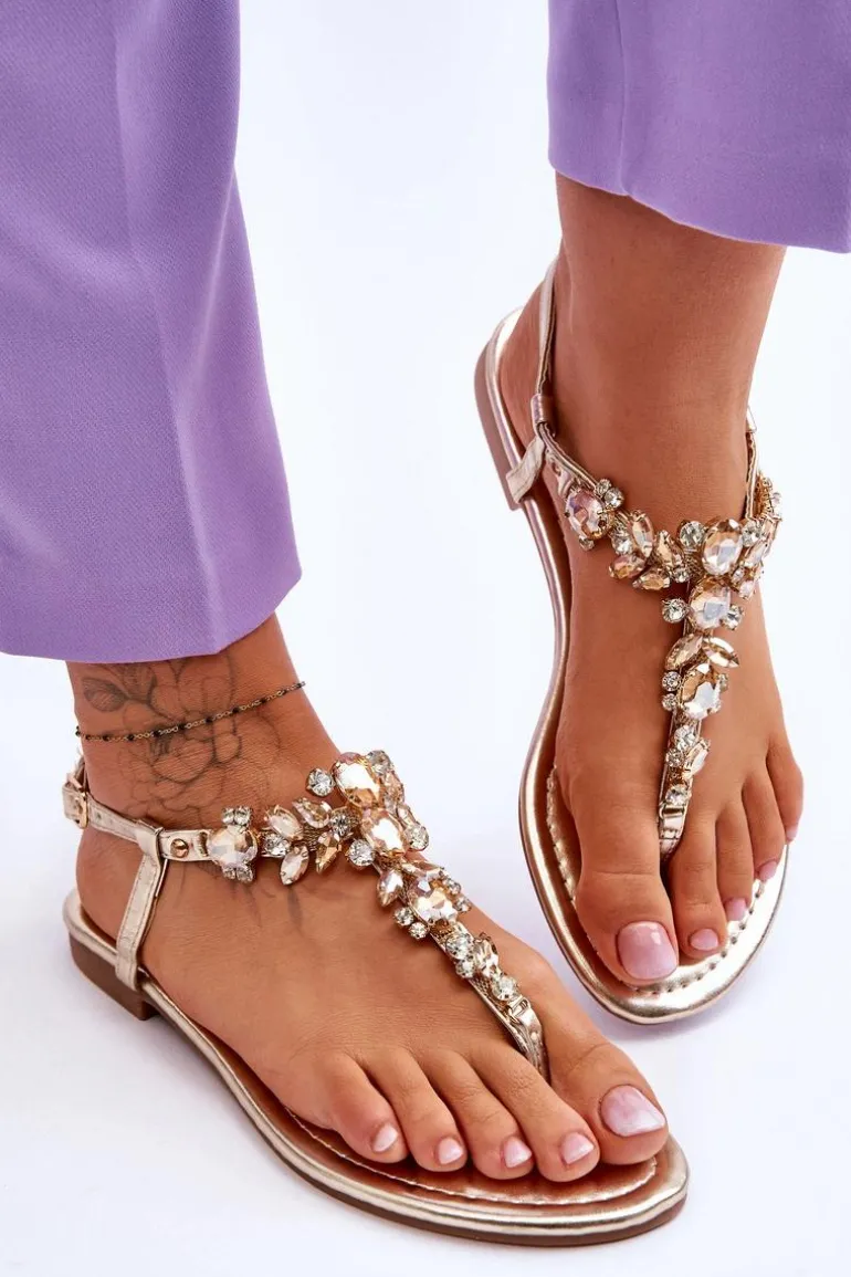 Damskie sandały o fasonie japonek to idealny wybór na cieplejsze dni! Zostały wykonane z eko skóry. Posiadają zdobienia na całości w postaci kamieni i dżetów. Zapinane wokół kostki na regulowany pasek ze sprzączką. Osadzone na płaskim obcasie. Wygodna w użytkowaniu wkładka została wykonana z eko skóry. Przy wyborze rozmiaru prosimy kierować się tabelą rozmiarów.