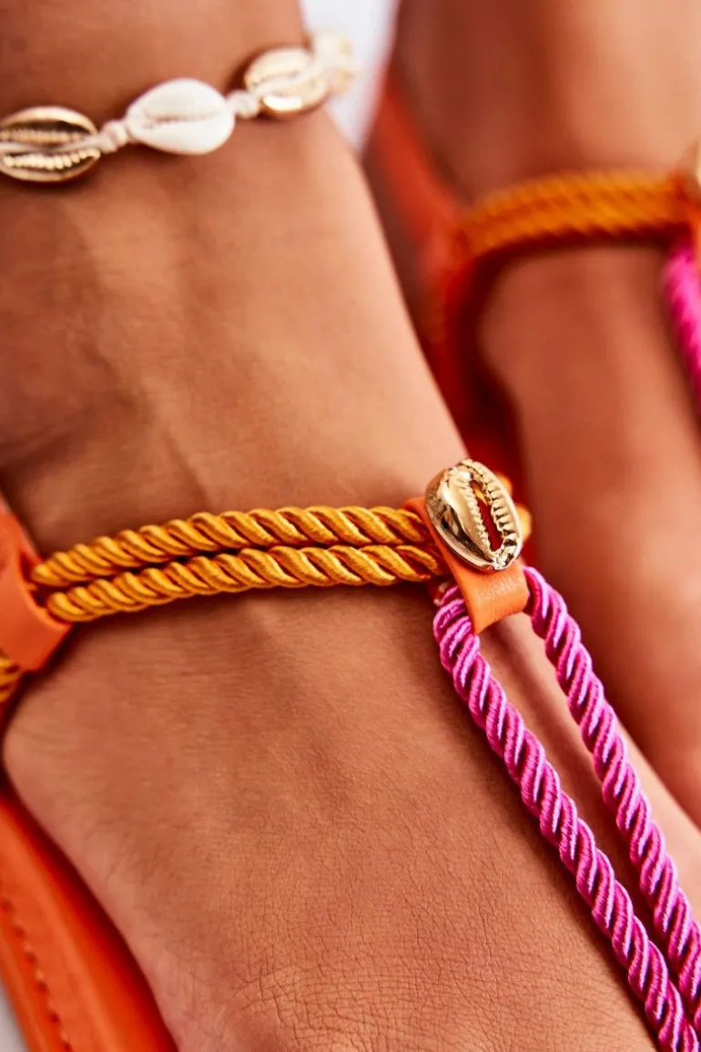 Damskie Sandały Japonki Z Muszelką Pomarańczowe Candell