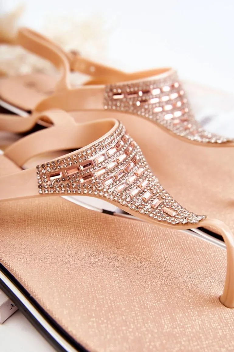 Damskie sandały są idealnym obuwiem na upalne dni! Model w stylu japonek. Buty te zostały wykonane w całości z gumowego tworzywa. Na paseczkach znajdują się piękne dżety imitujące cyrkonie. Zapinane na sprzączkę z regulowanym paskiem. Sandały te są osadzone na płaskim obcasie z antypoślizgową podeszwą. Ten niezwykły model powinien znaleźć się właśnie w Twojej szafie! Przy wyborze rozmiaru prosimy kierować się tabelą rozmiarów.