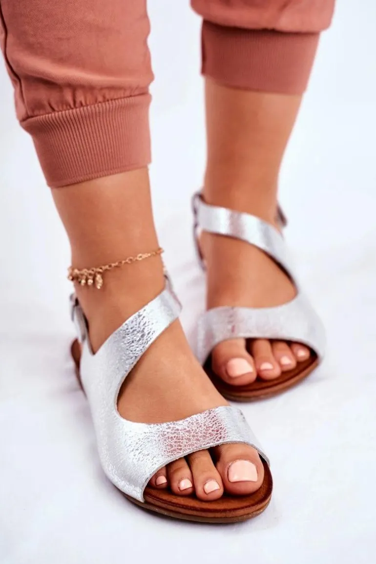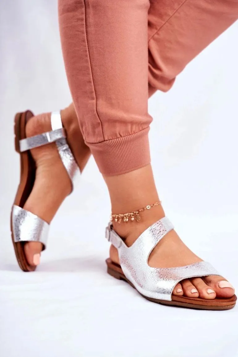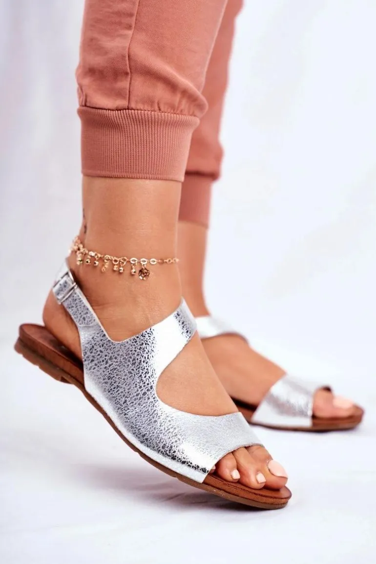 Damskie Sandały Laura Messi Skórzane 1116 Snake Srebrne Vollare