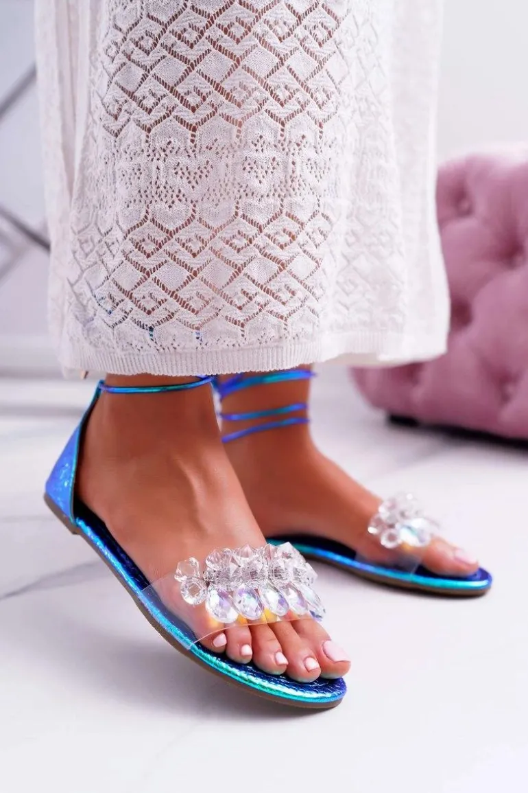 Damskie Sandały Lu Boo Kryształy Niebieskie Madina