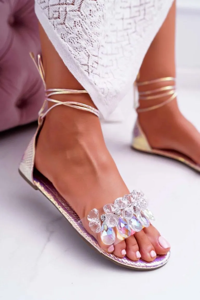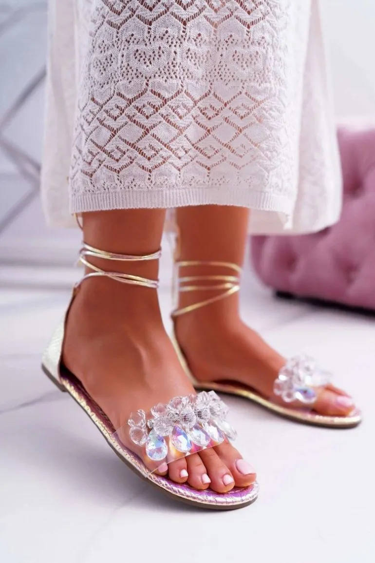 Damskie Sandały Lu Boo Kryształy Różowe Madina