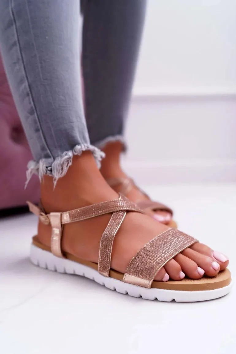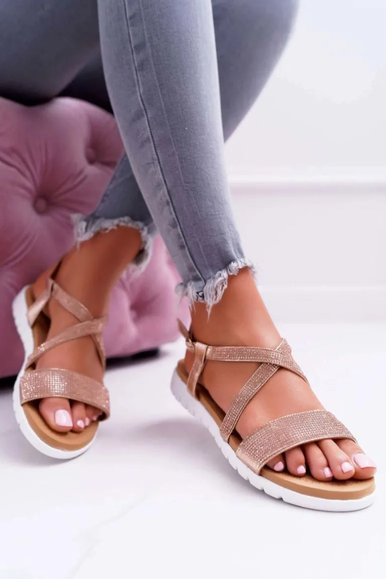Damskie Sandały Lu Boo Z Cyrkoniami 406-5 Różowe Złoto Stella