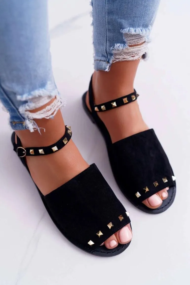 Damskie Sandały Lu Boo Zamszowe Czarne Silena