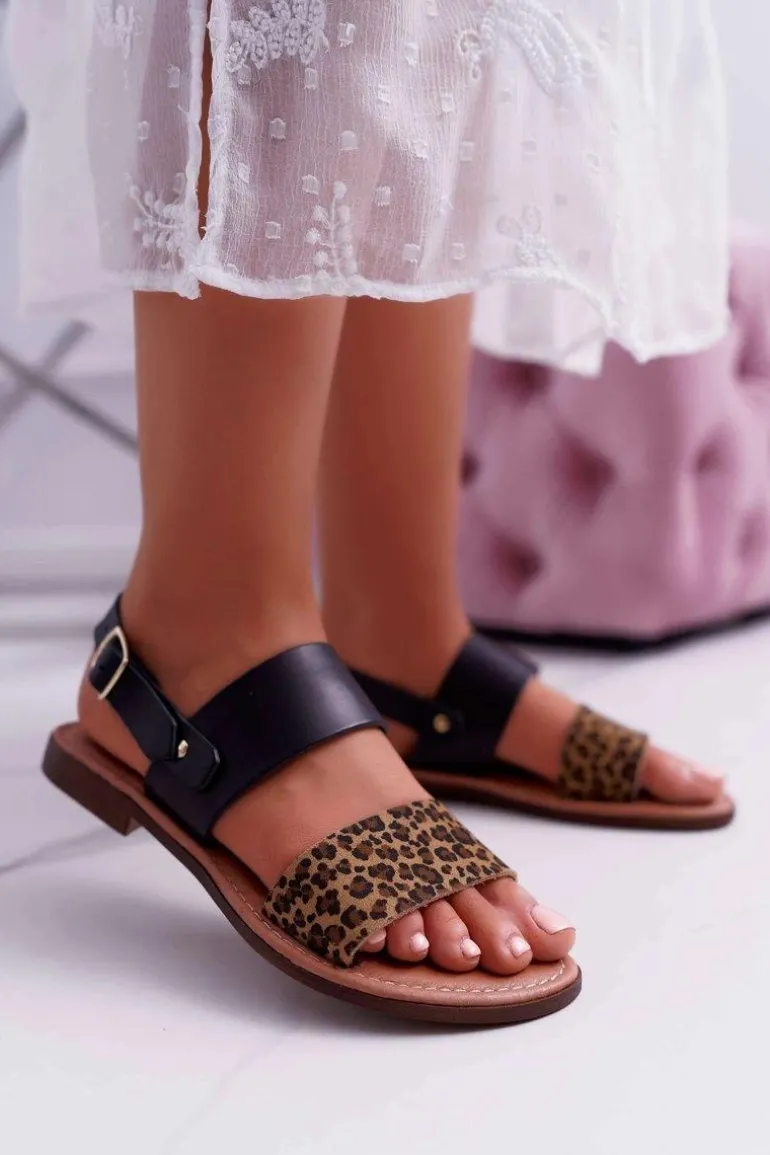 Damskie Sandały Maciejka Skórzane Panterka Czarne IT001-03