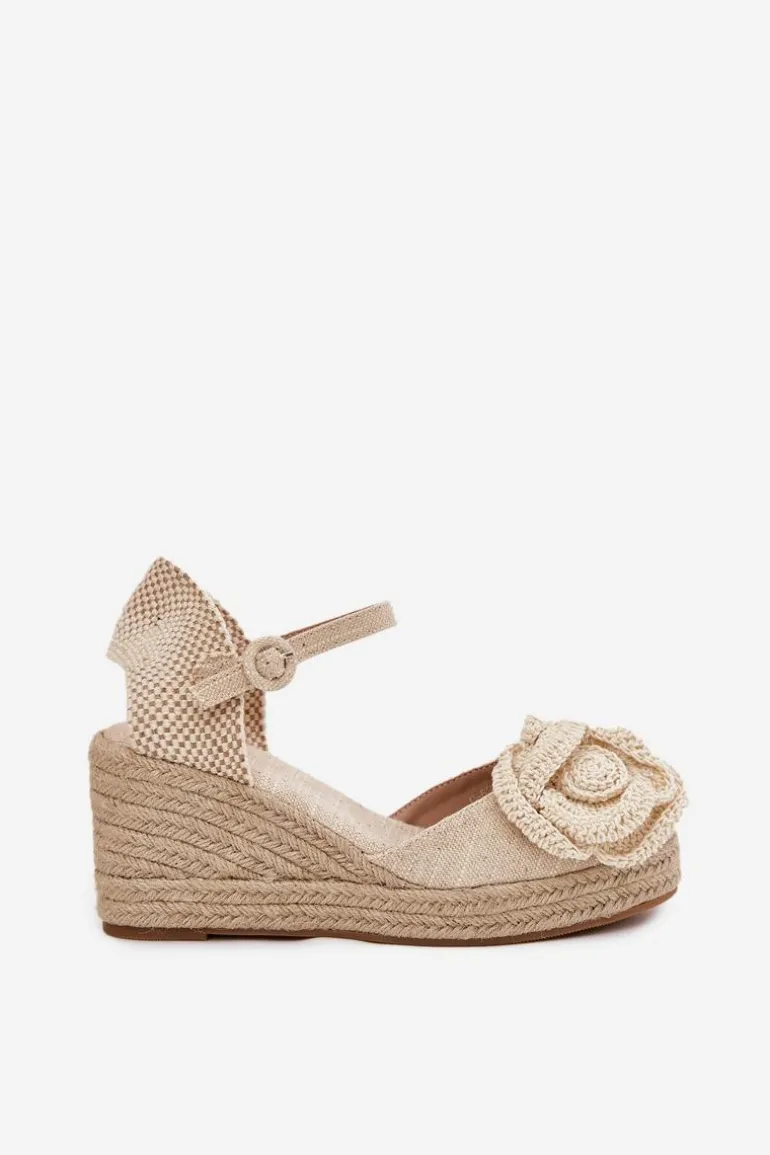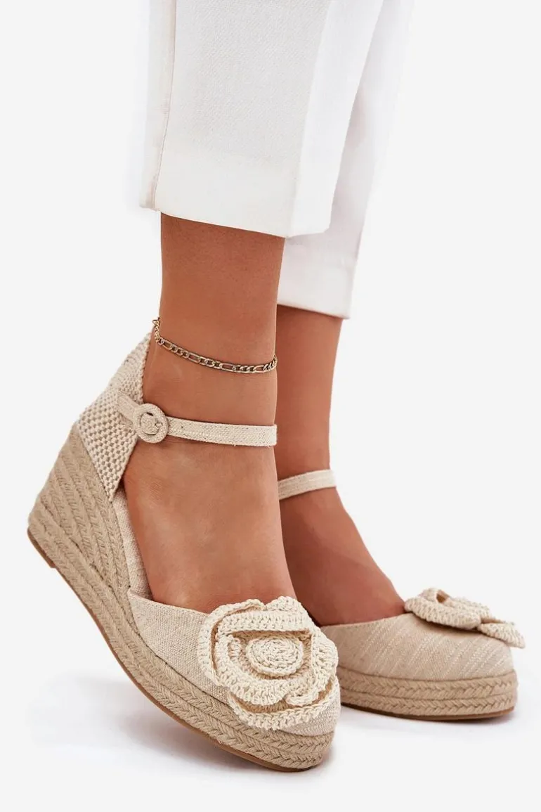 Sandały damskie wykonane z materiału tekstylnego, osadzone na koturnie z plecionką, to stylowa i wygodna opcja na letnie dni. Zakryte noski dodają elegancji, a szydełkowy kwiat z przodu przyciąga wzrok, nadając im wyjątkowego uroku. Zapinane na sprzączkę z regulowanym paskiem, zapewniają idealne dopasowanie do stopy. Doskonałe do letnich stylizacji, łączą komfort z modnym wyglądem. Przy wyborze rozmiaru prosimy sugerować się tabelą rozmiarów.