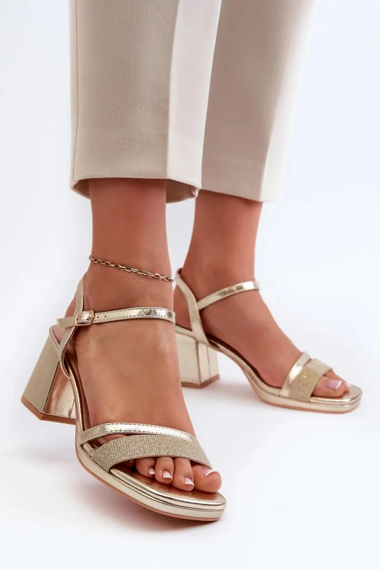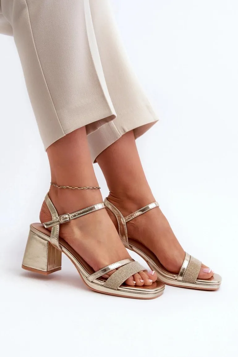 Sandały damskie wykonane z eko skóry. Osadzone na obcasie w postaci słupka. Zapinane na regulowany pasek ze sprzączką, gwarantują idealne dopasowanie do stopy. Z przodu dwa paseczki, dodatkowo jeden obszyty jest błyszczącą nicią, dodając im delikatnego blasku. Te sandały będą doskonałym uzupełnieniem każdej letniej stylizacji! Przy wyborze rozmiaru prosimy sugerować się tabelą rozmiarów.