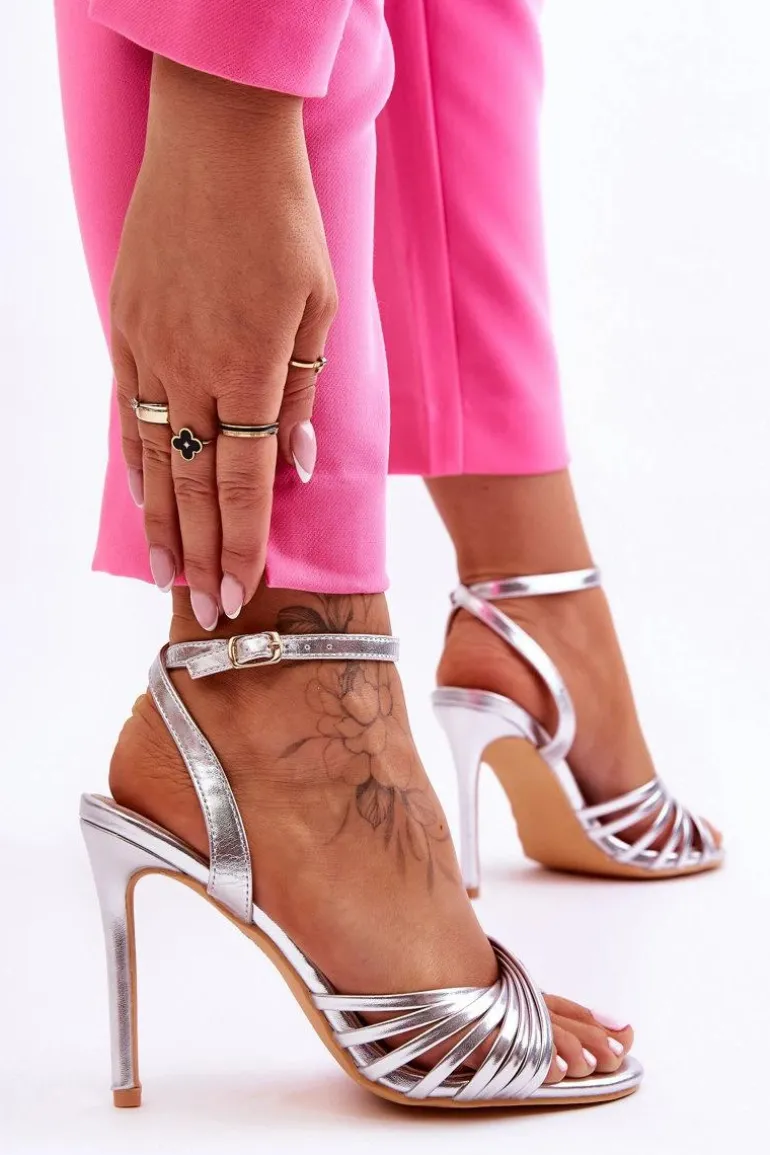 Damskie Sandały Na Szpilce Srebrne My Darling