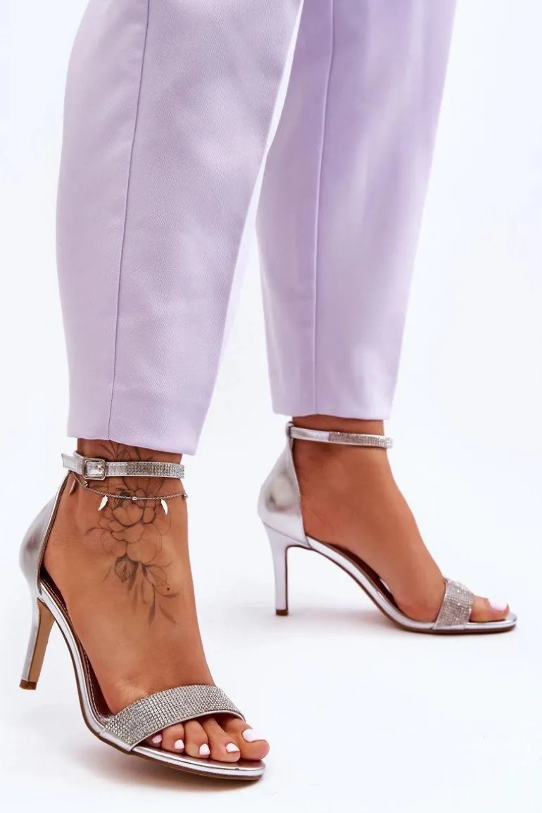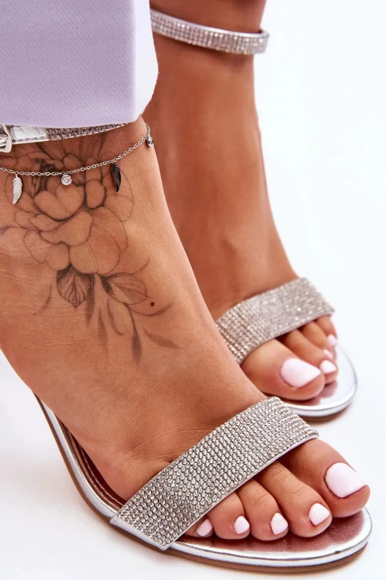 Damskie Sandały Na Szpilce Z Dżetami Srebrne Perfecto