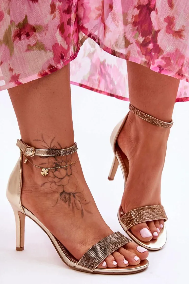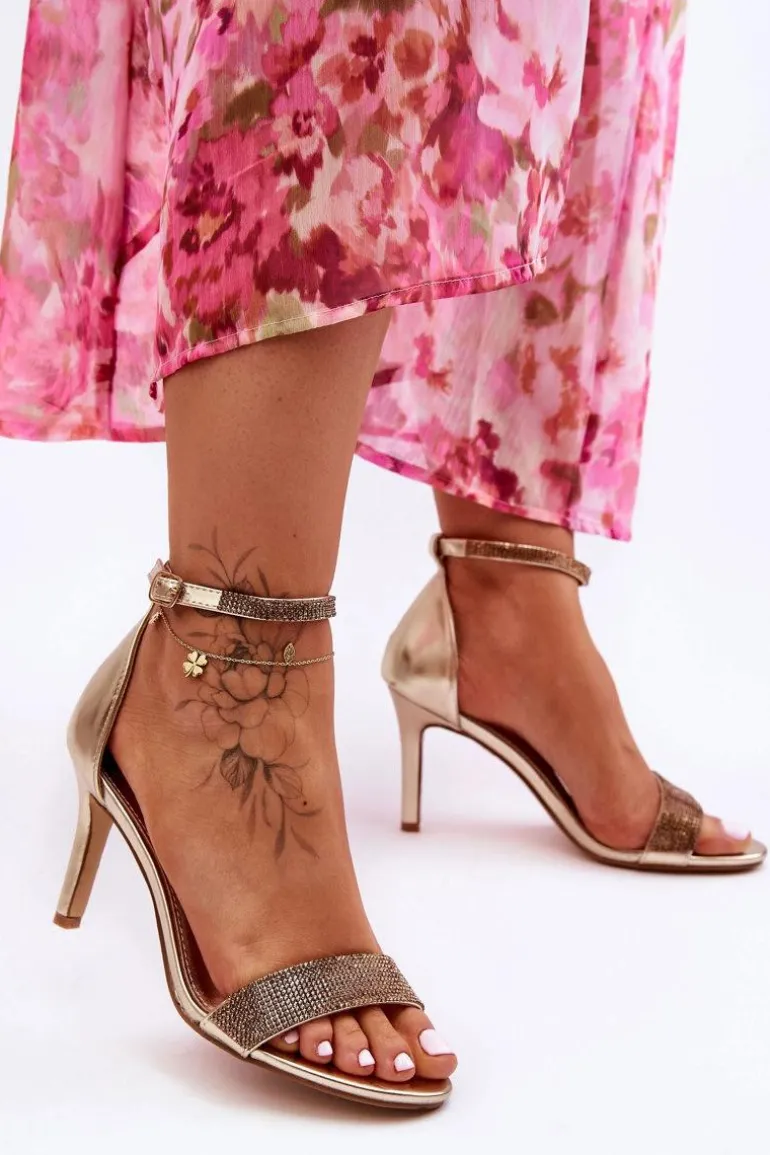 Damskie Sandały Na Szpilce Z Dżetami Złote Perfecto