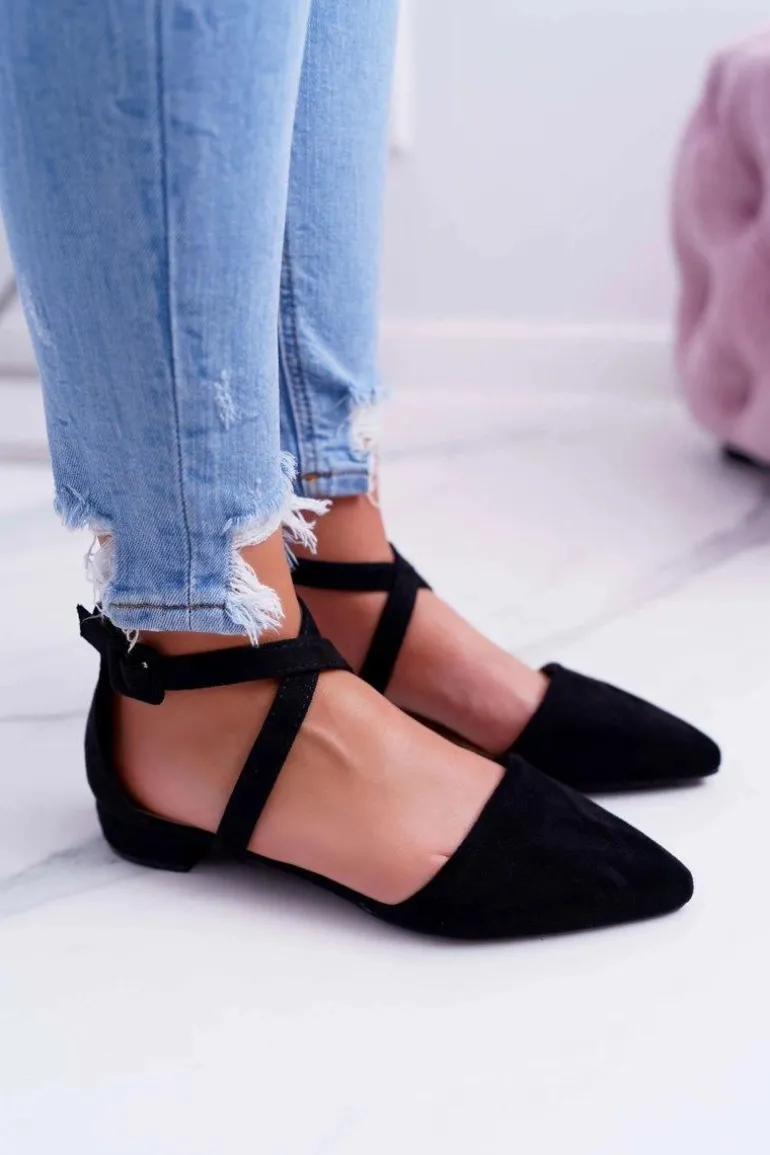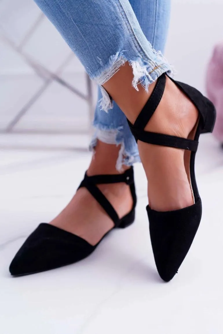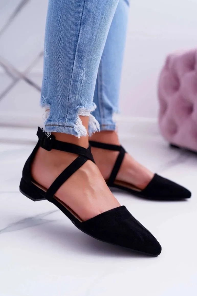 Wygodne, baleriny na płaskim obcasie to marzenie każdej kobiety! Profilowana wkładka oraz zapięcie wokół kostki da Ci gwarancje dobrego samopoczucia oraz gustownego wyglądu. Ekozamszowy materiał oraz nosek w szpic z pewnością sprawi, że zostaniesz zauważona! Już dziś sprawdź całą naszą ofertę modnych balerinek. Przy wyborze rozmiaru prosimy sugerować się tabelą rozmiarów.