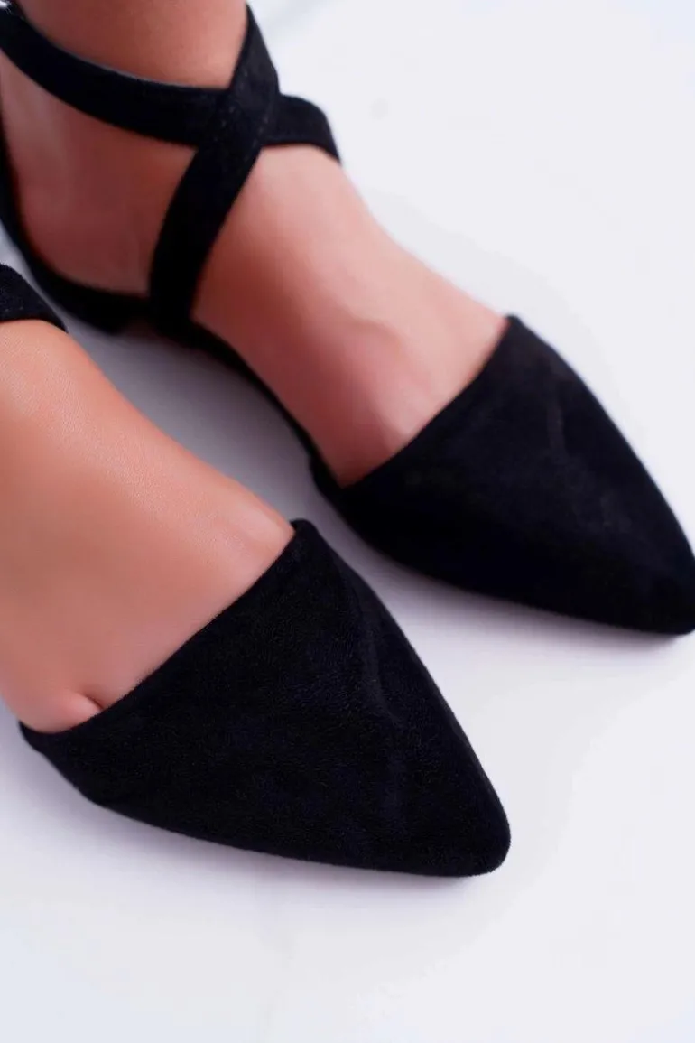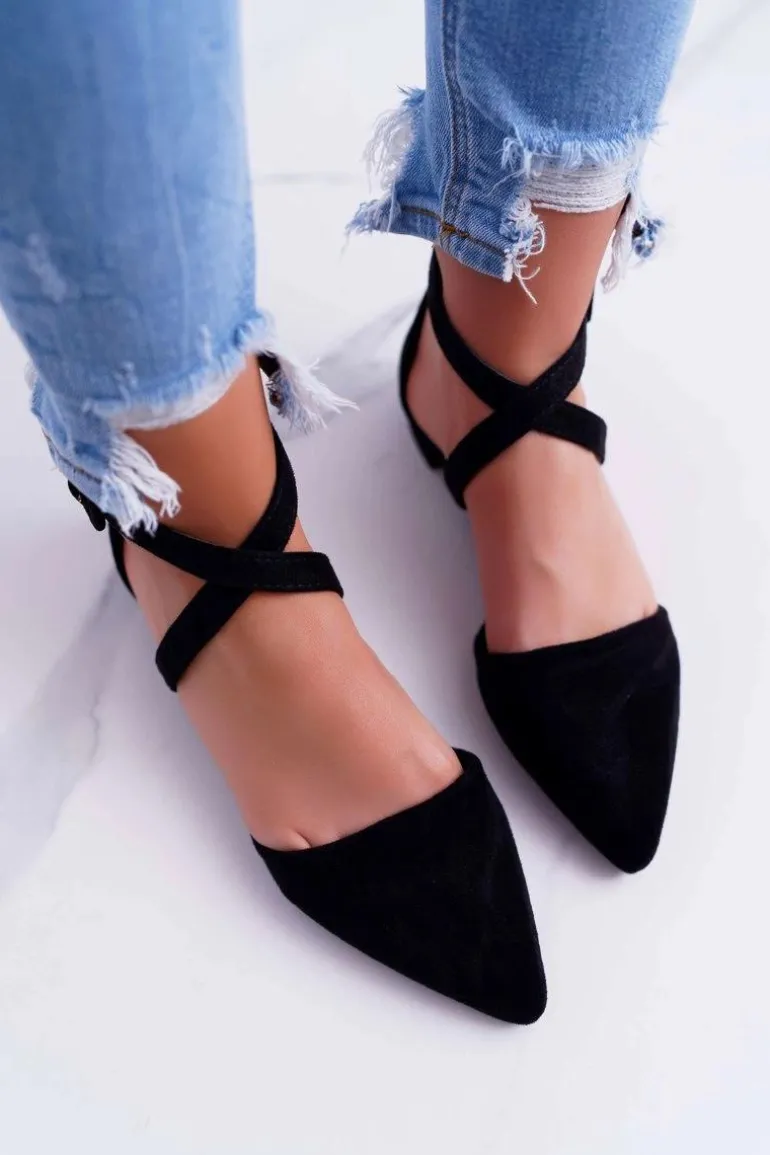 Damskie Sandały Płaskie Czarne Zamszowe W Szpic Medena