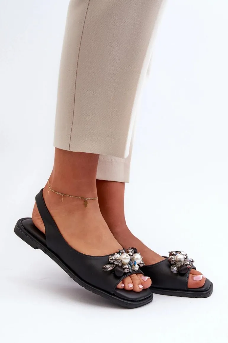 Damskie sandały z wysokiej jakości ekologicznej skóry. Przód ozdobiony eleganckimi detalami. Pasek z tyłu posiada gumeczkę dla lepszego dopasowania. Osadzone na płaskim obcasie. Miękka wkładka Comfort gwarantuje komfort noszenia. Przy wyborze rozmiaru prosimy kierować się tabelą rozmiarów.