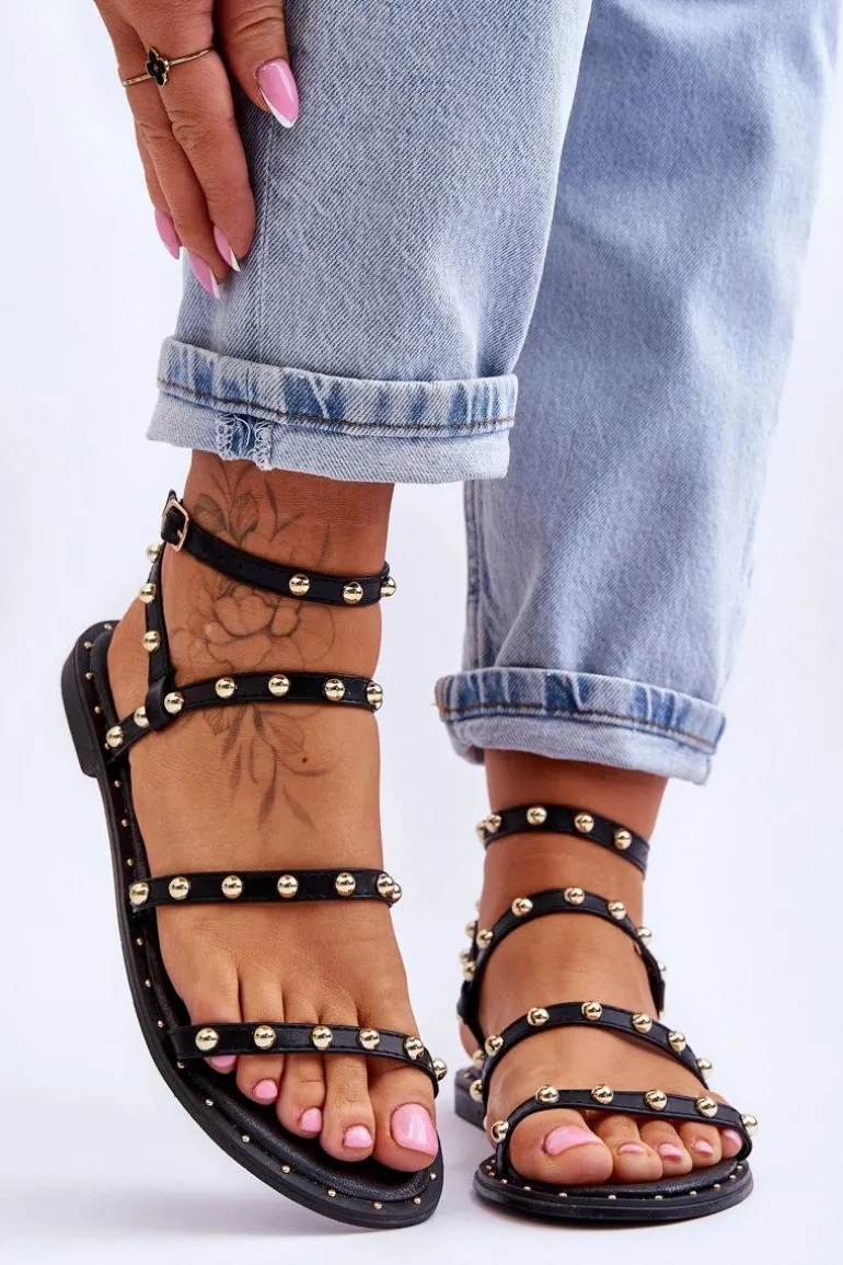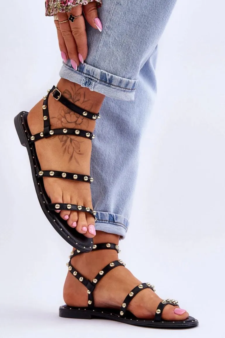 Damskie Sandały Z Ozdobnymi Ćwiekami Czarne Dorothy