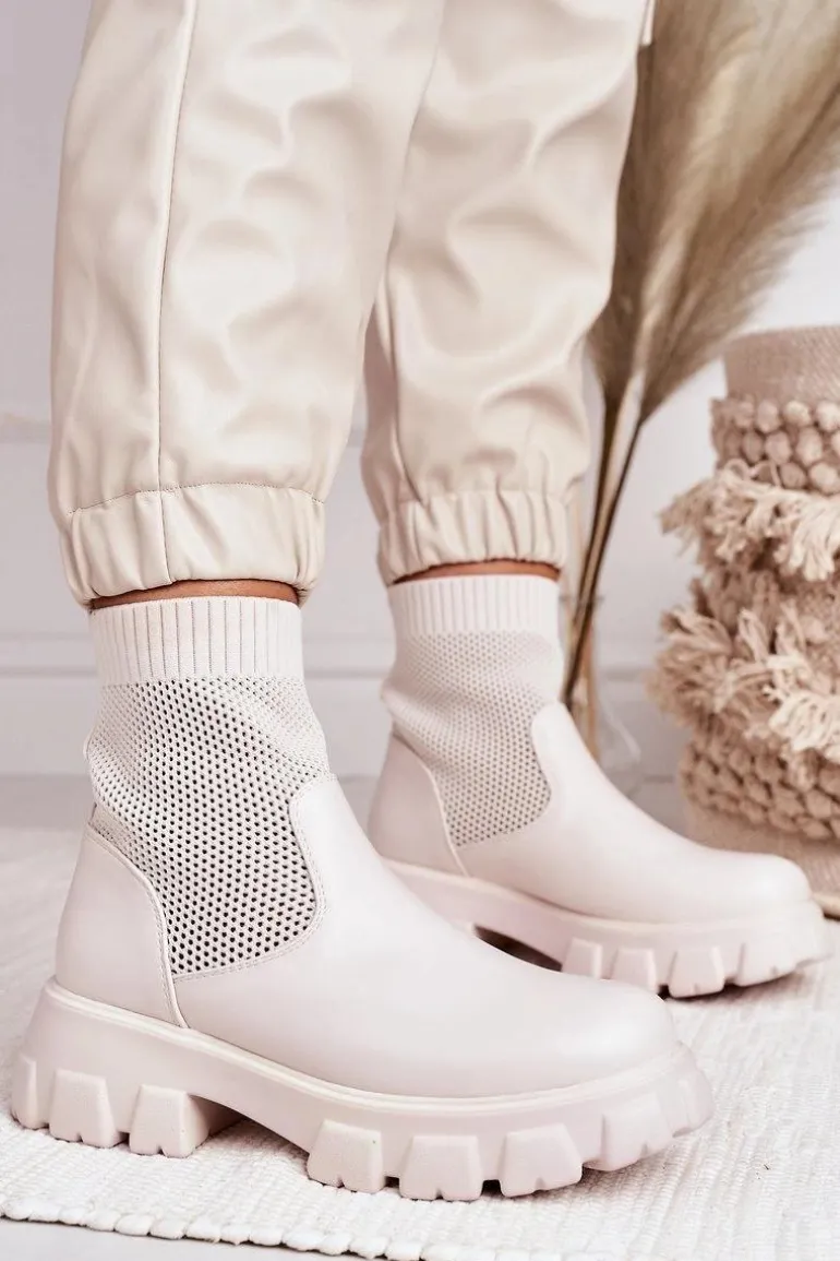 Damskie skarpetkowe botki na platformie. Miękka ażurowa cholewka, oraz masywna podeszwa to 'must have’ w tym sezonie! Buty wykonane są z eko skóry w modnym kolorze. Koniecznie sprawdź całą naszą kolekcję damskich botków. Przy wyborze rozmiaru prosimy sugerować się tabelą rozmiarów.