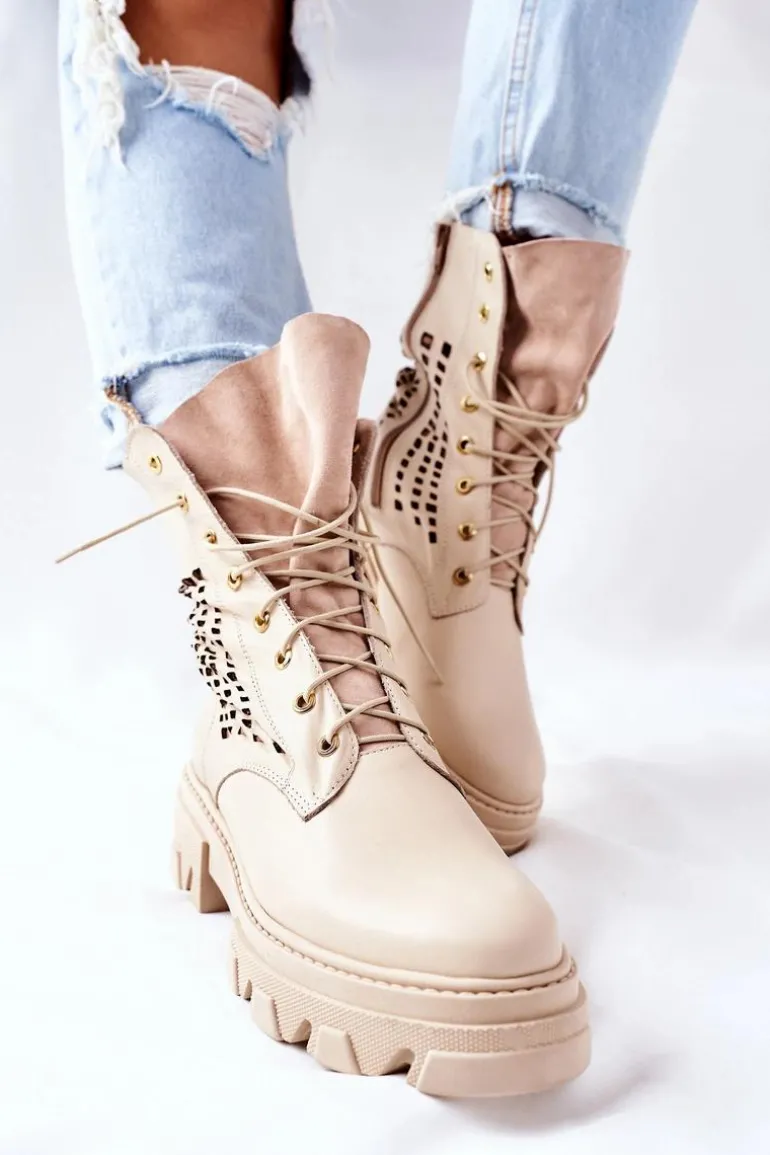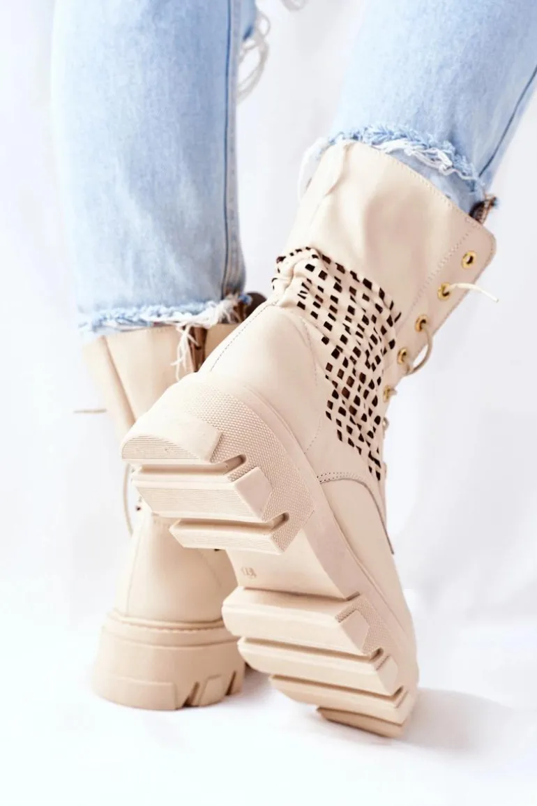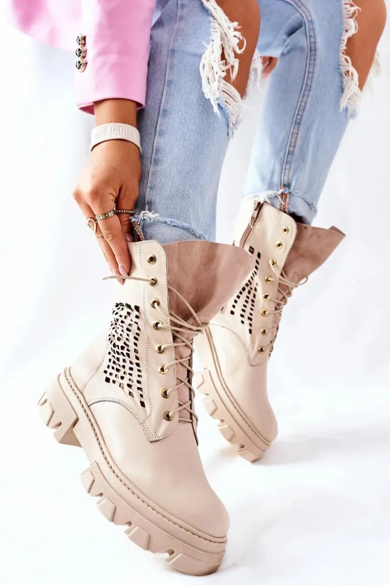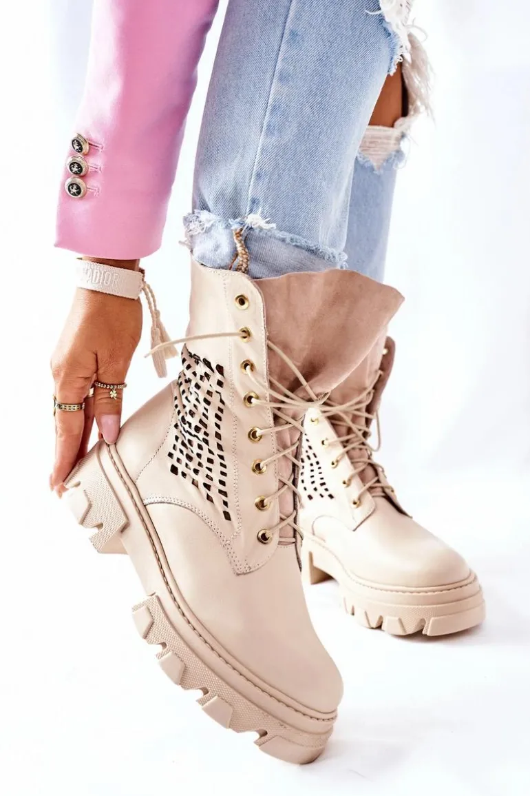 Szukasz mocniejszego stylu? Dobrze trafiłaś, bo te botki spełniają Twoje wymagania! Z nimi stworzysz wiele ciekawych stylizacji. Wysoka cholewka oraz masywna podeszwa – co tu więcej dodawać? Klasyczny fason ze sznurowaniem oraz zapięciem na suwak. Botki w całości wykonane z najwyższej jakości skóry. Przy wyborze rozmiaru prosimy sugerować się tabelą rozmiarów.