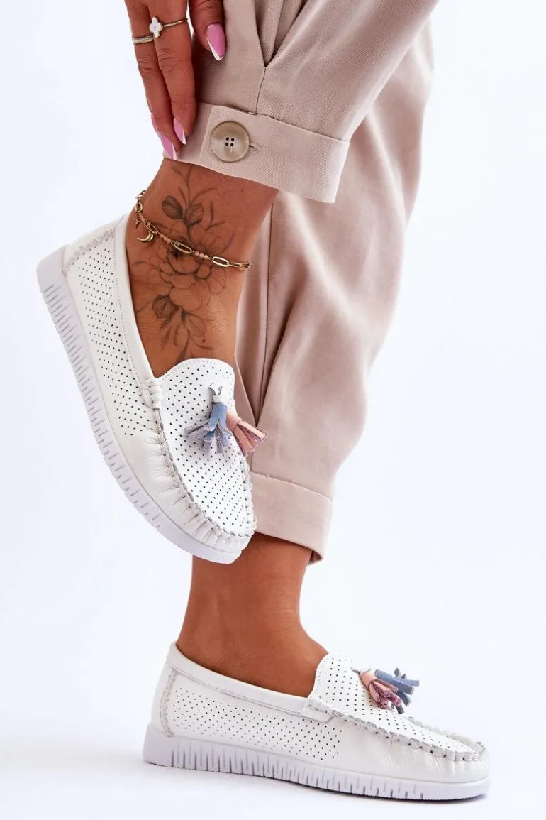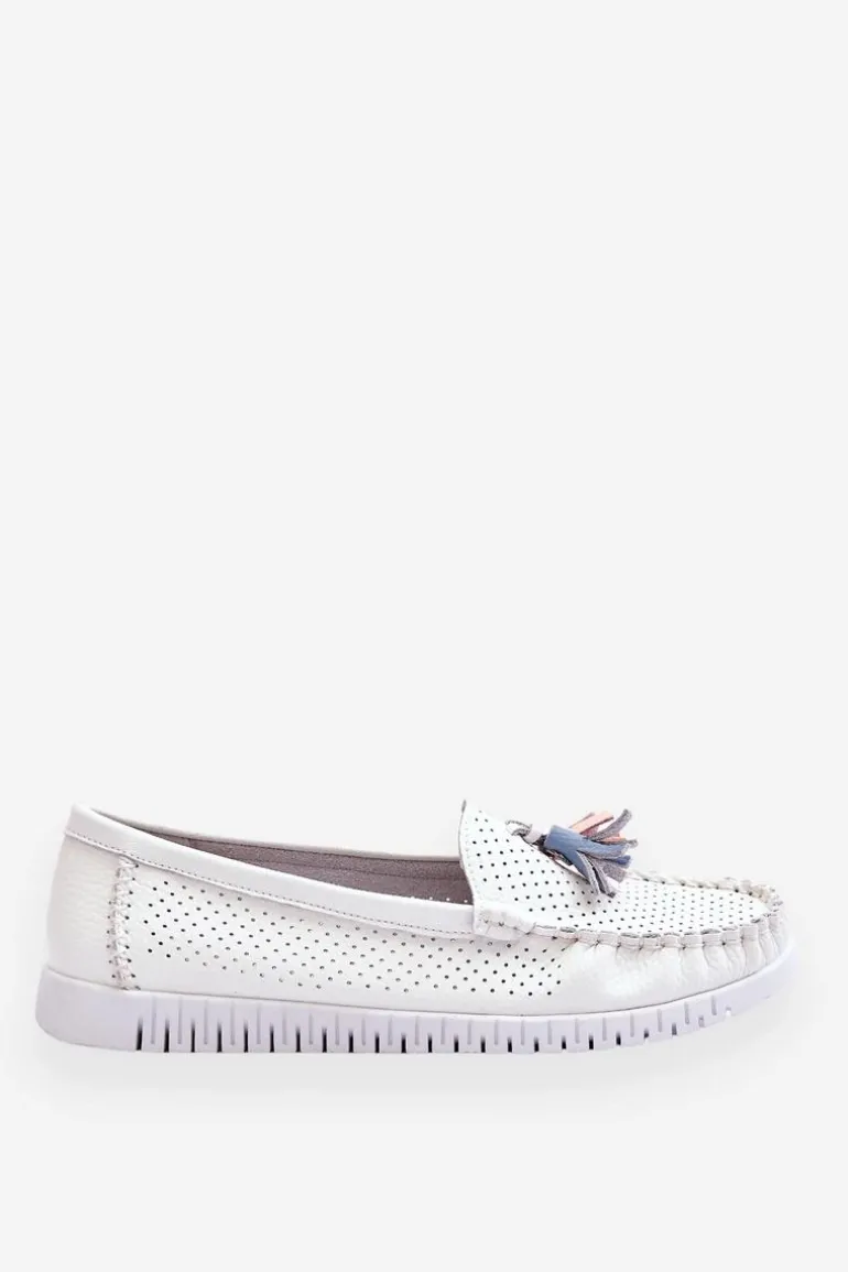 Klasyczne, damskie mokasyny zostały wykonane z naturalnej skóry. Na przodzie znajdują się ozdobne frędzelki. Mokasyny zostały osadzone na platformie z gumową, antypoślizgową podeszwą. Miękka wkładka z naturalnej skóry jest częściowo perforowana. Świetny model do wielu wiosenno-letnich stylizacji! Przy wyborze rozmiaru prosimy sugerować się tabelą rozmiarów.